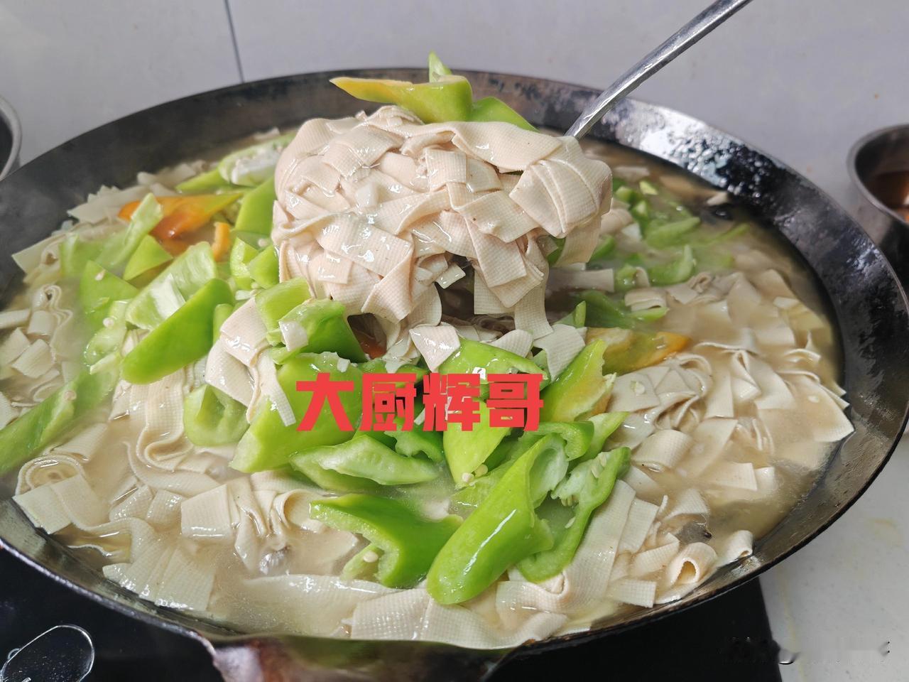 起锅烧油,最好是大豆油烧热。放入八角和葱姜爆香,加入适量清水或者鸡汤煮沸。放入干豆腐,加入盐、味精、鸡精和胡椒粉调味,烧三分钟左右,放入尖椒块。