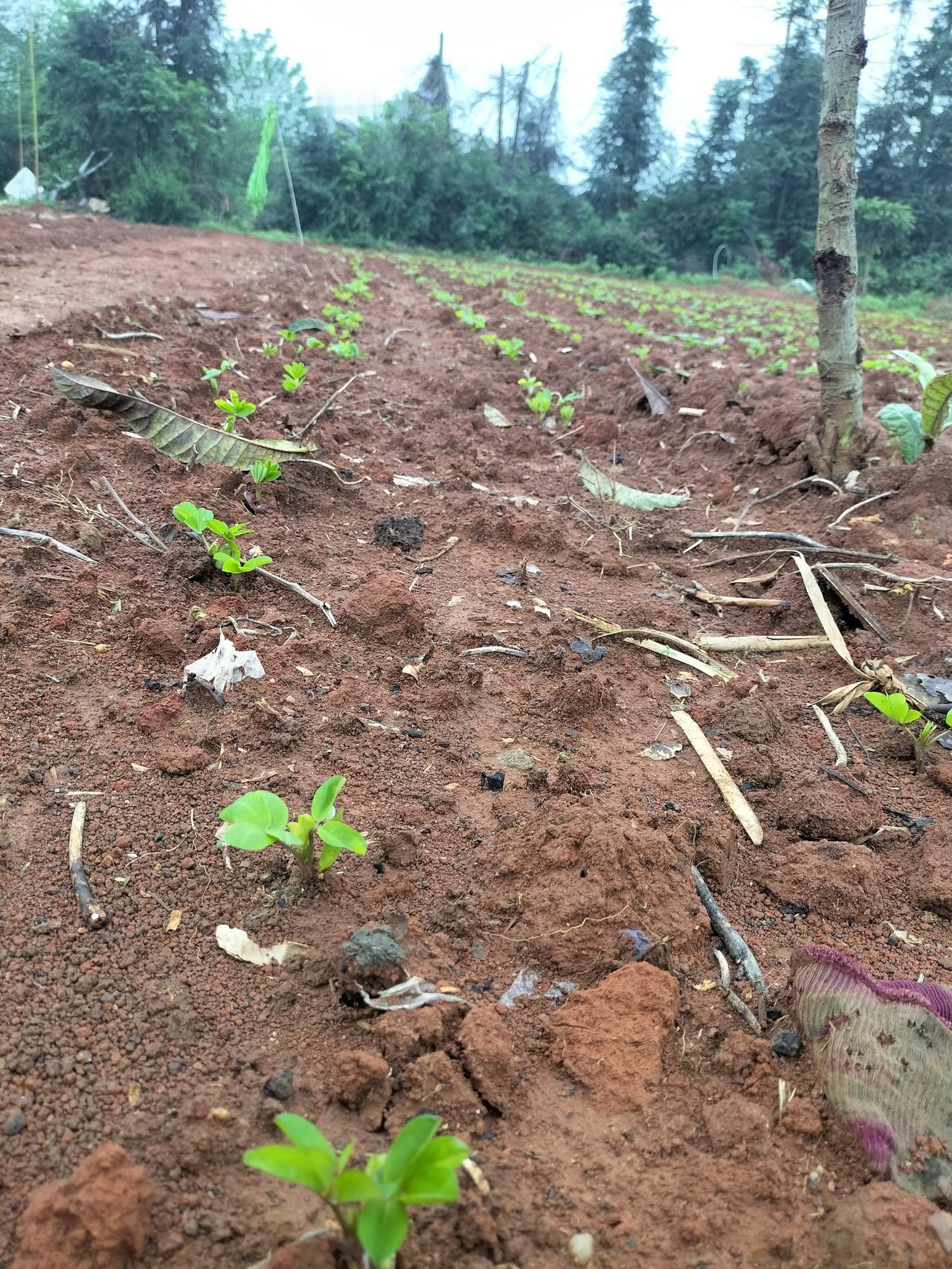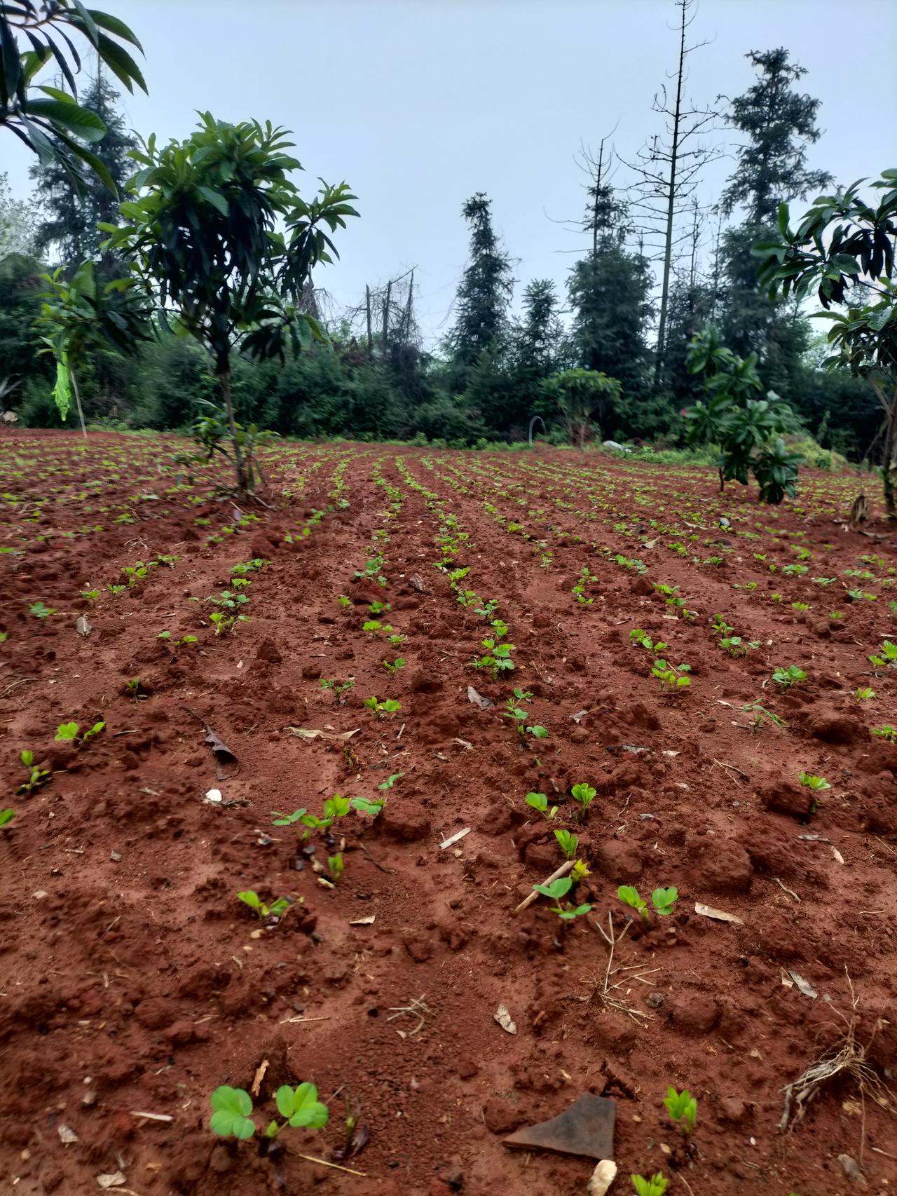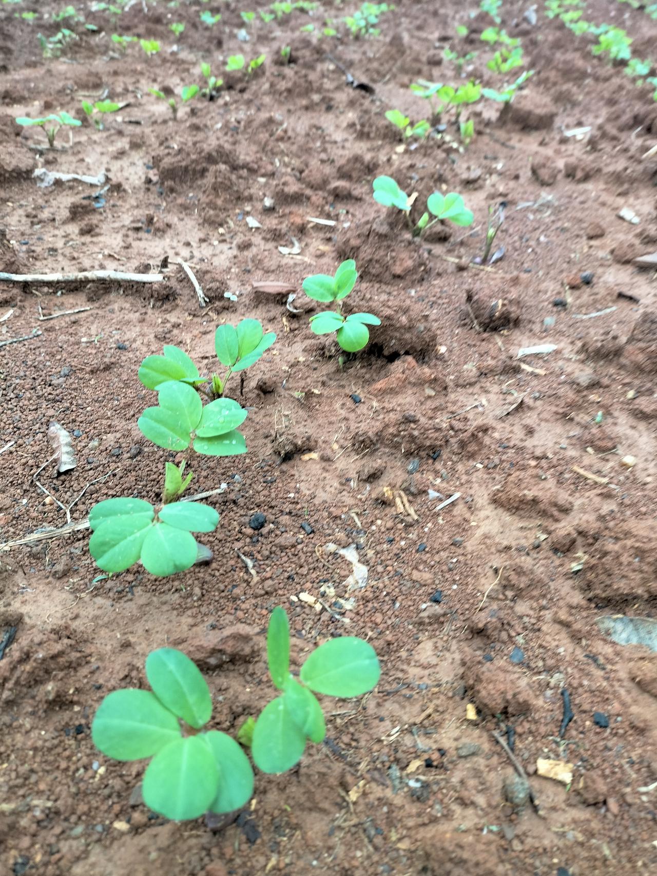 他们种庄稼真的是一把手,而且他们养了一头牛,牛把这一片地都耕完了,他们把花生种下去之后,又是牵牛来把地盖住,所以才会种一大片花生,有好几苗啊,别的地方也种了。