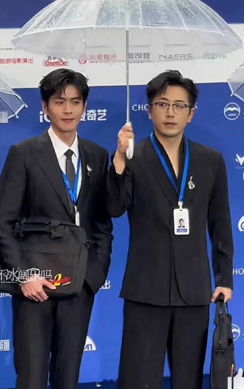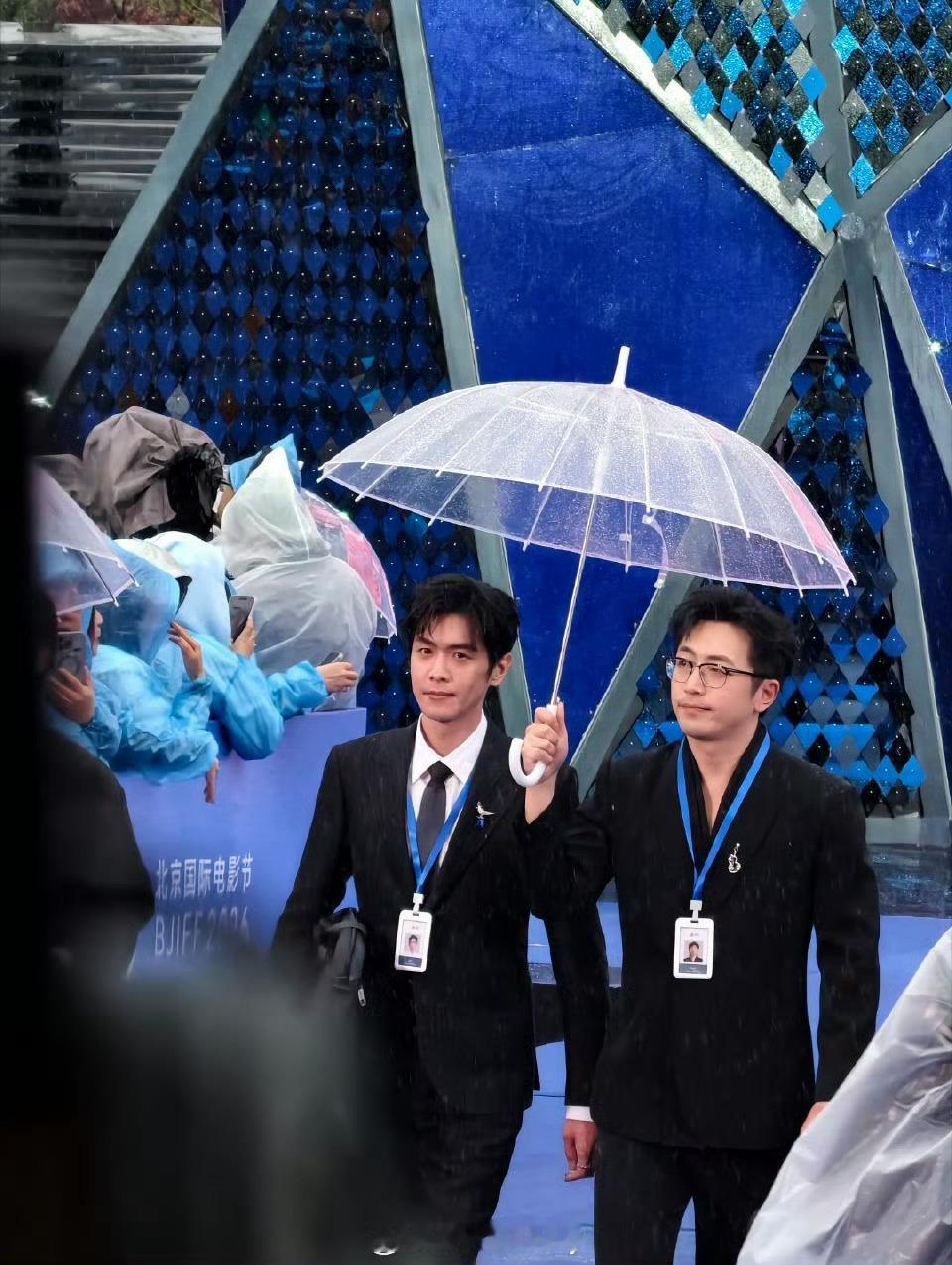 白客给张若昀打伞北影节红毯名场面好暖心~《年会不能停2》剧组同框亮相,白客全程贴心给张若昀撑伞,细节感拉满,两人同框氛围感超好北京国际电影节北影节红毯
