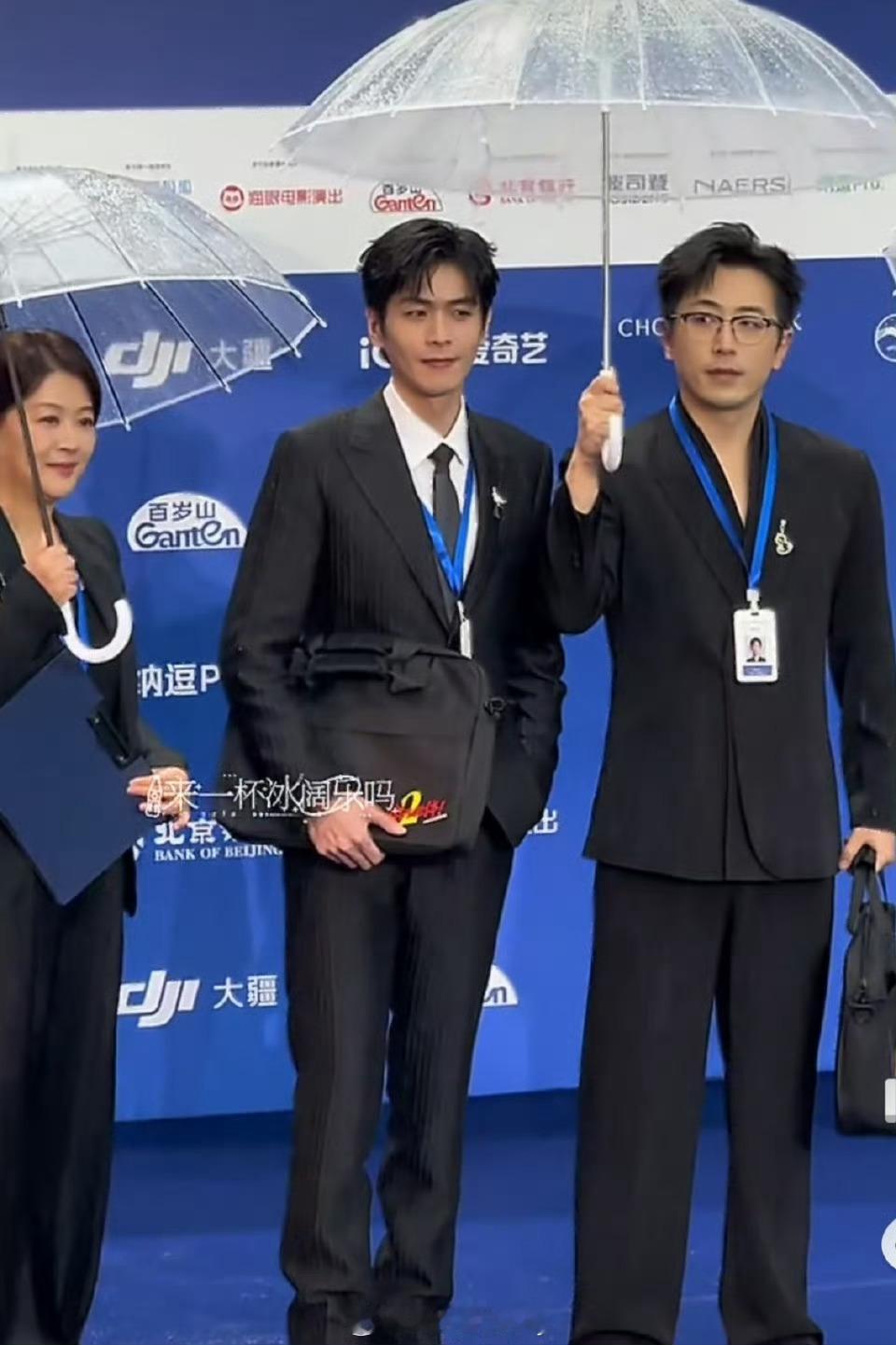 白客给张若昀打伞北影节红毯名场面好暖心~《年会不能停2》剧组同框亮相,白客全程贴