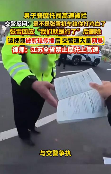 “网暴交警?”江苏盐城,一名摩托骑手无视禁令骑着摩托车冲向高速入口,结果被执勤交警当场拦下。可面对交警的劝阻,骑手像打了鸡血一样高喊:“我要上高速”,还拿出了《道路交通安全法》的手册,对着交警说是上位法允许的。在争执过程中,交警怒将手册摔在地上,然后抛出一句话,后经过某些自媒体掐头去尾,以及张雪本人的回复,就导致了交警遭到了网暴。不过,张雪又很快删除了那条回复。目前,警方正在核实网传视频的情况。