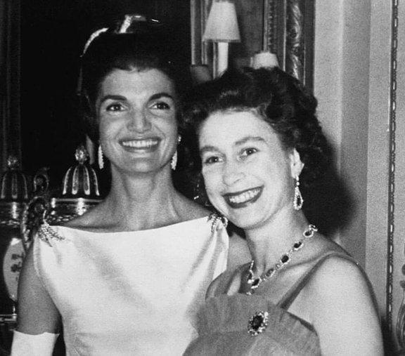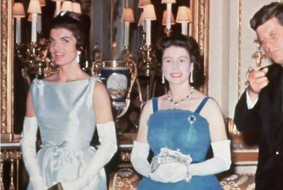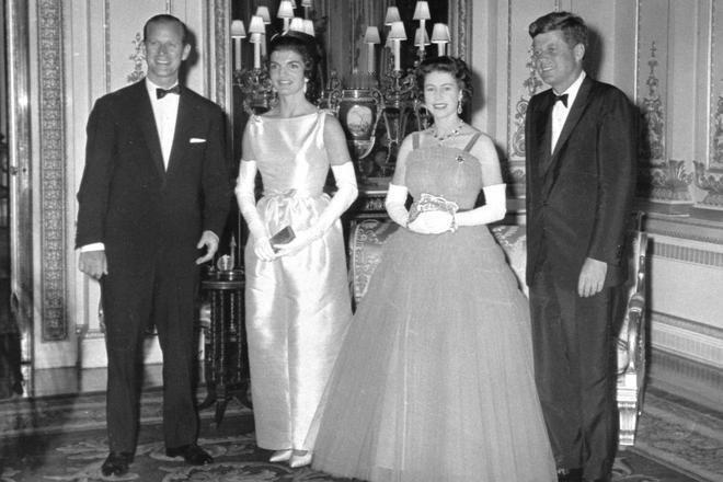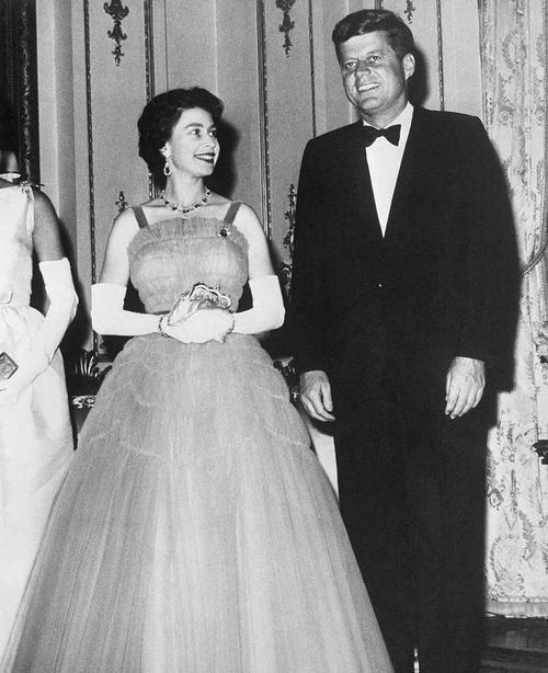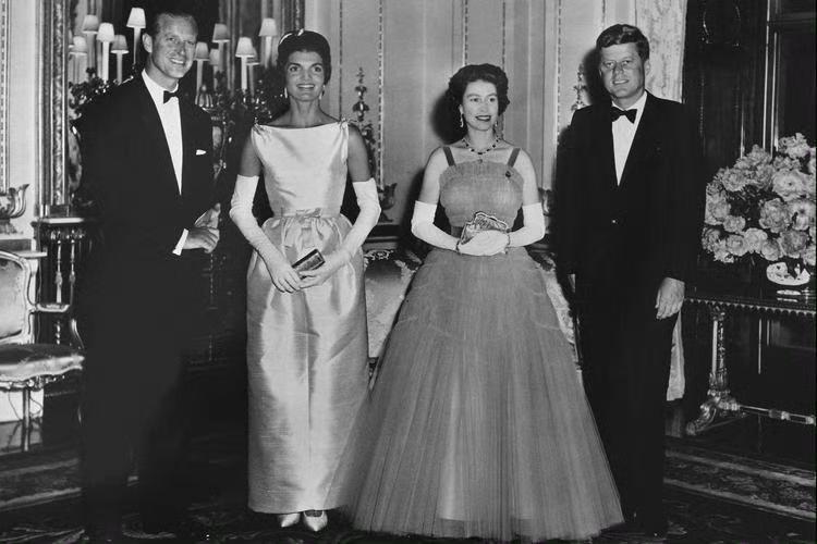 【来自投稿】1961年6月5日,英国伊丽莎白二世女王和菲利普亲王在白金汉宫主持晚宴,款待美国总统约翰·肯尼迪和第一夫人杰奎琳·肯尼迪