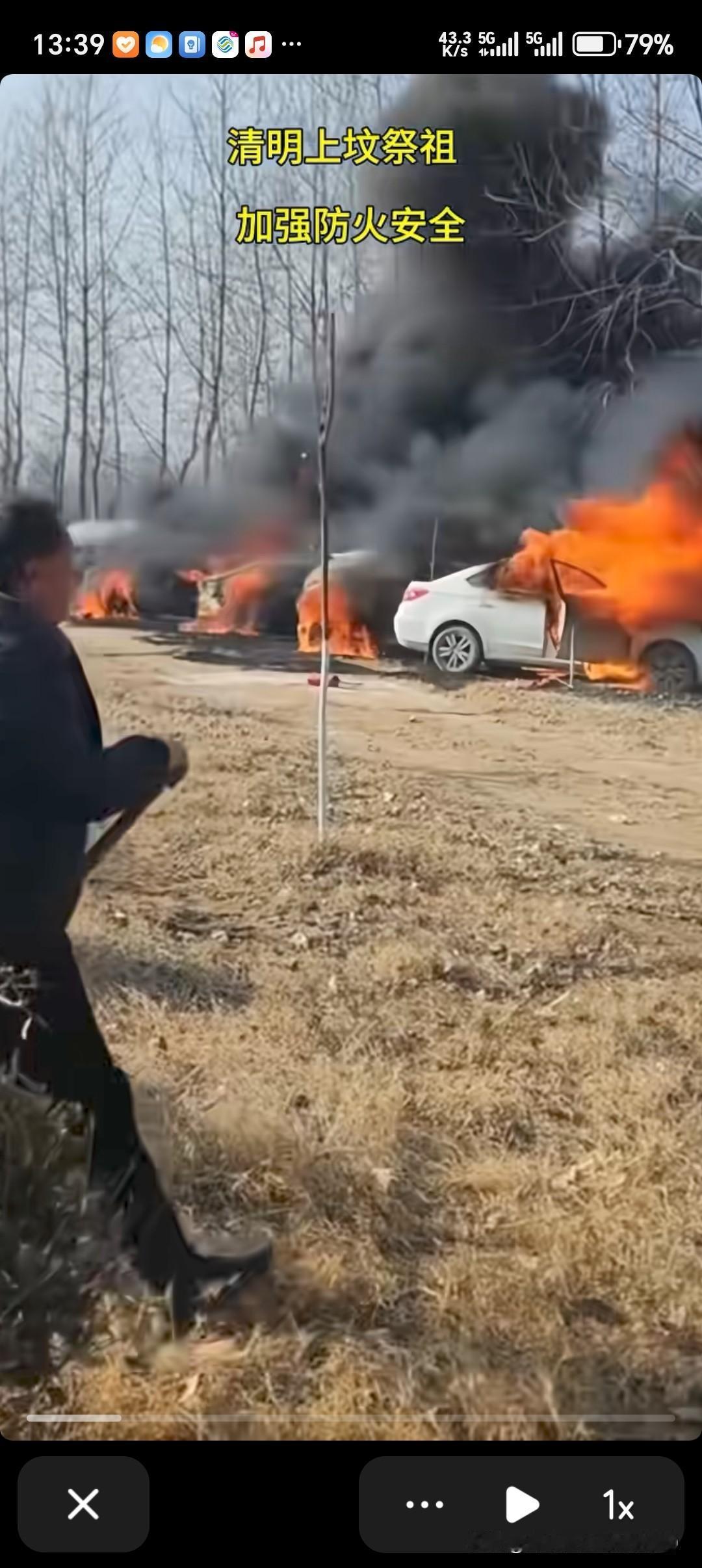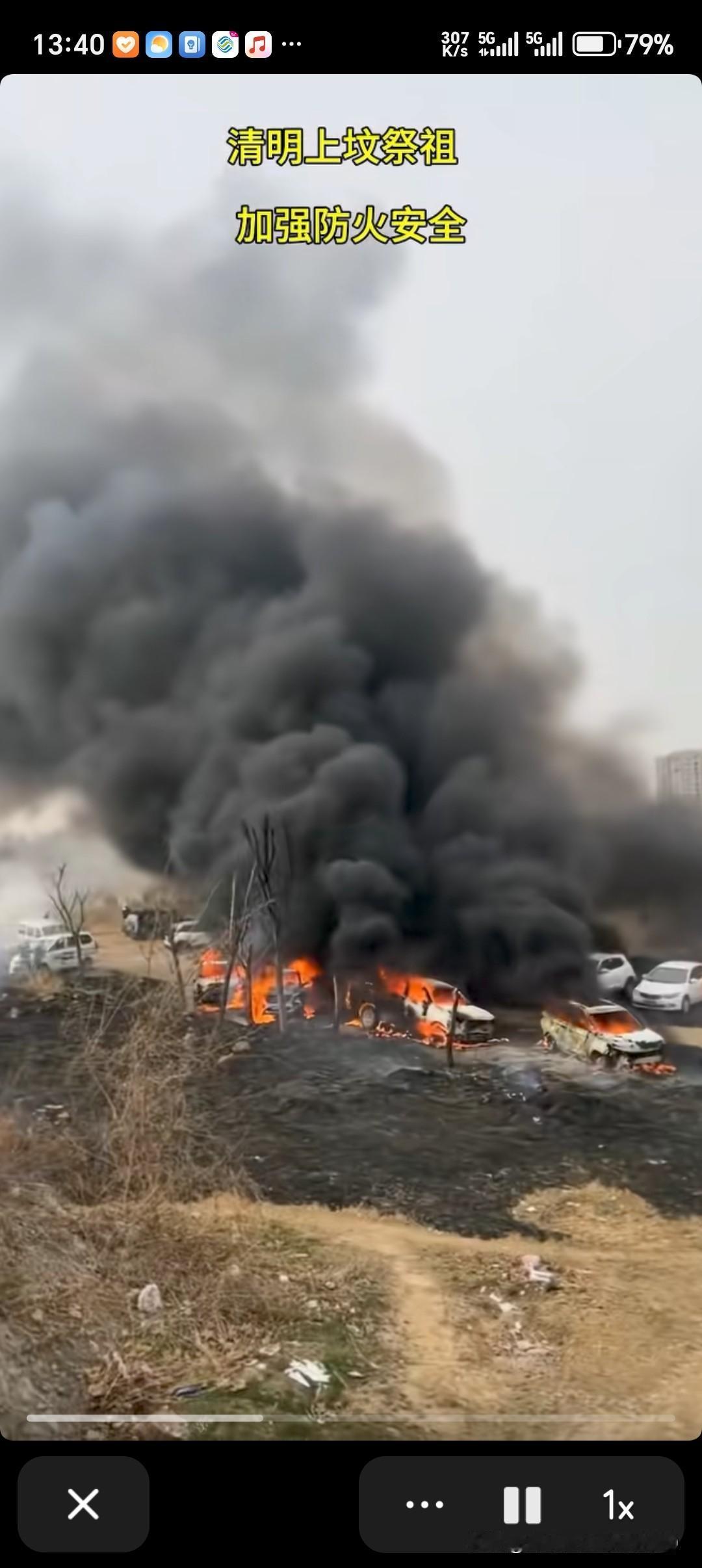 浓烟滚滚,火光冲天,多辆汽车被烧,这是发生在清明节的一幕。清明节上坟祭祖这是我们几千年来的传统,无可厚非,但一定要注意防火安全,春季天干物燥风大,一点点星星之火就极有可能造成大火漫延,造成不可弥补的损失。