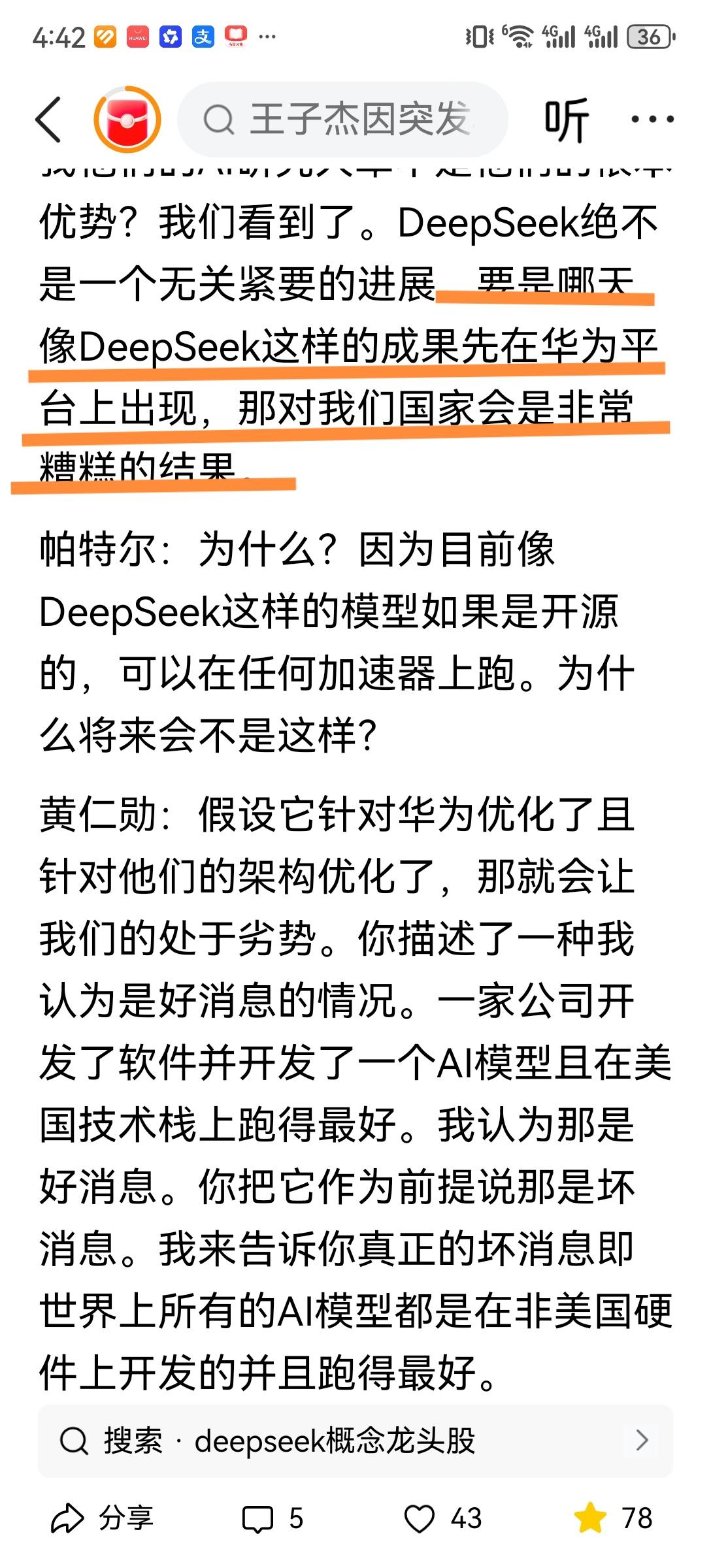 黄仁勋说,如果哪天像Ds这样的成果先在华为平台上出现,那对我们国家会是非常糟糕的