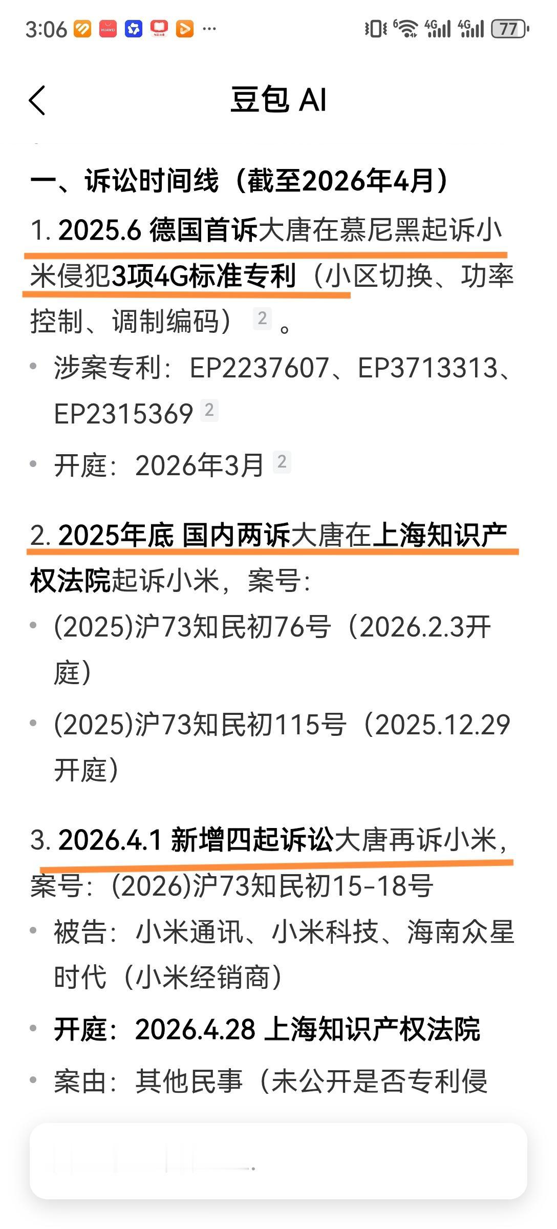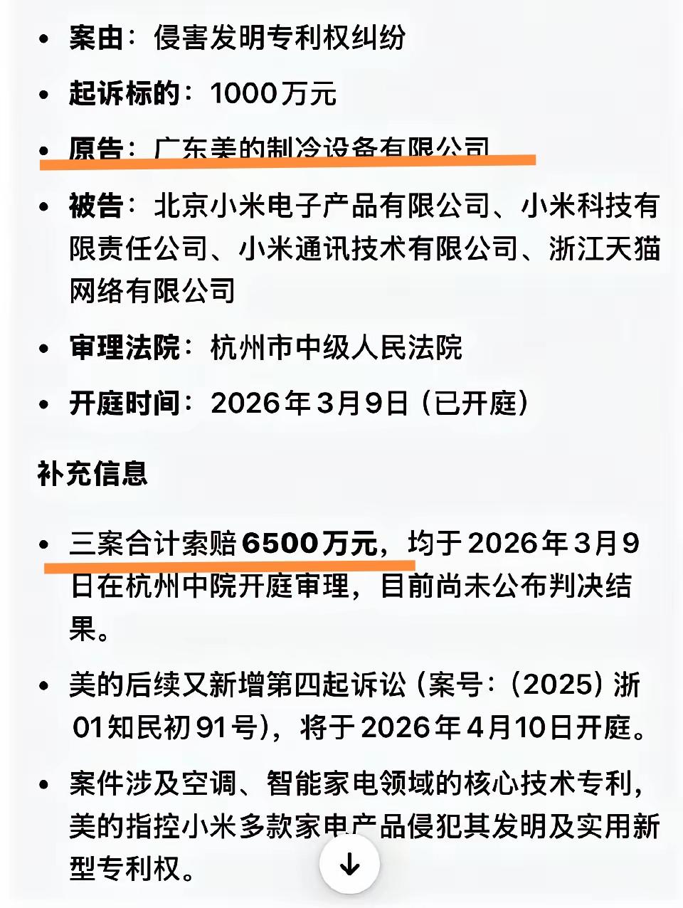 挺热闹的。大唐诉某米侵权案9起,其中欧洲统一专利法院3起,上海知识产权法院6起。华为诉某米侵权案4起,美的诉某米侵权案3起。