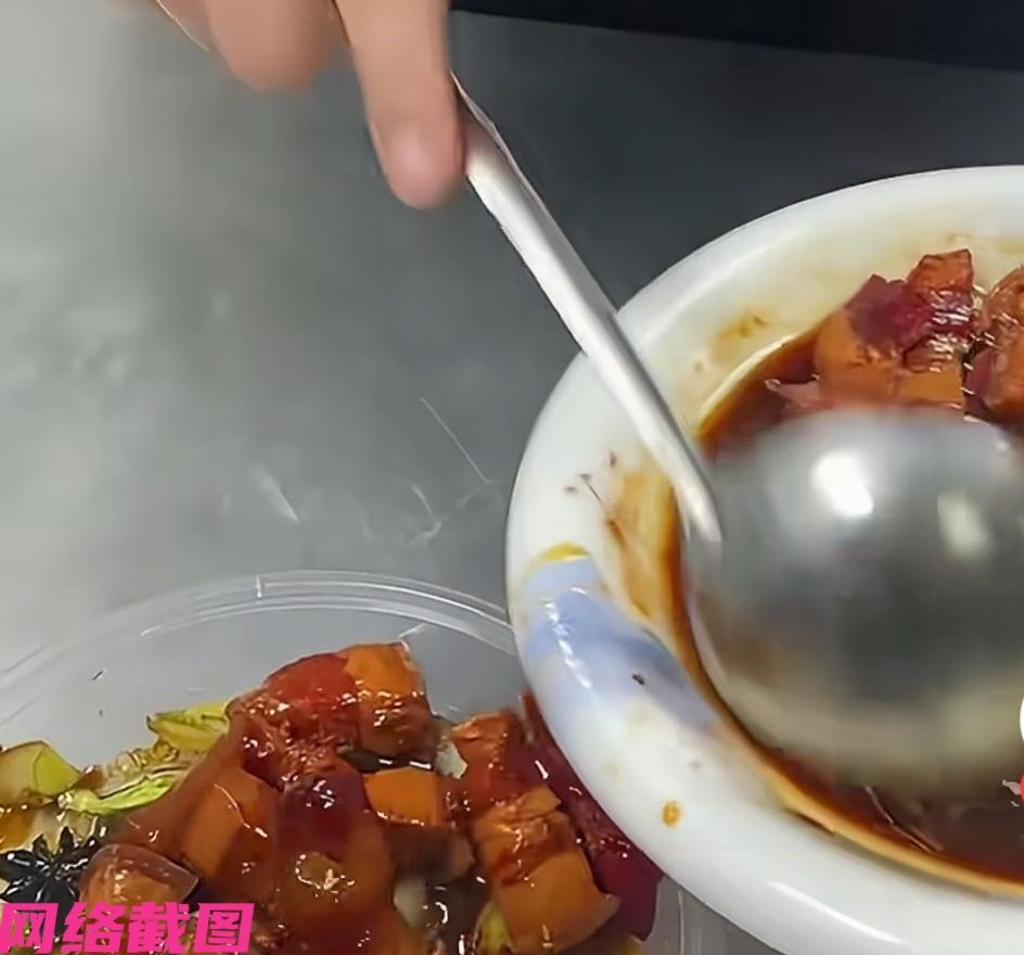 当女孩离开去扫码的这一刻,老板打开了女孩给妈妈准备的餐盒,加了几勺红烧肉,又压了两百元,放进两瓶饮料袋子里。