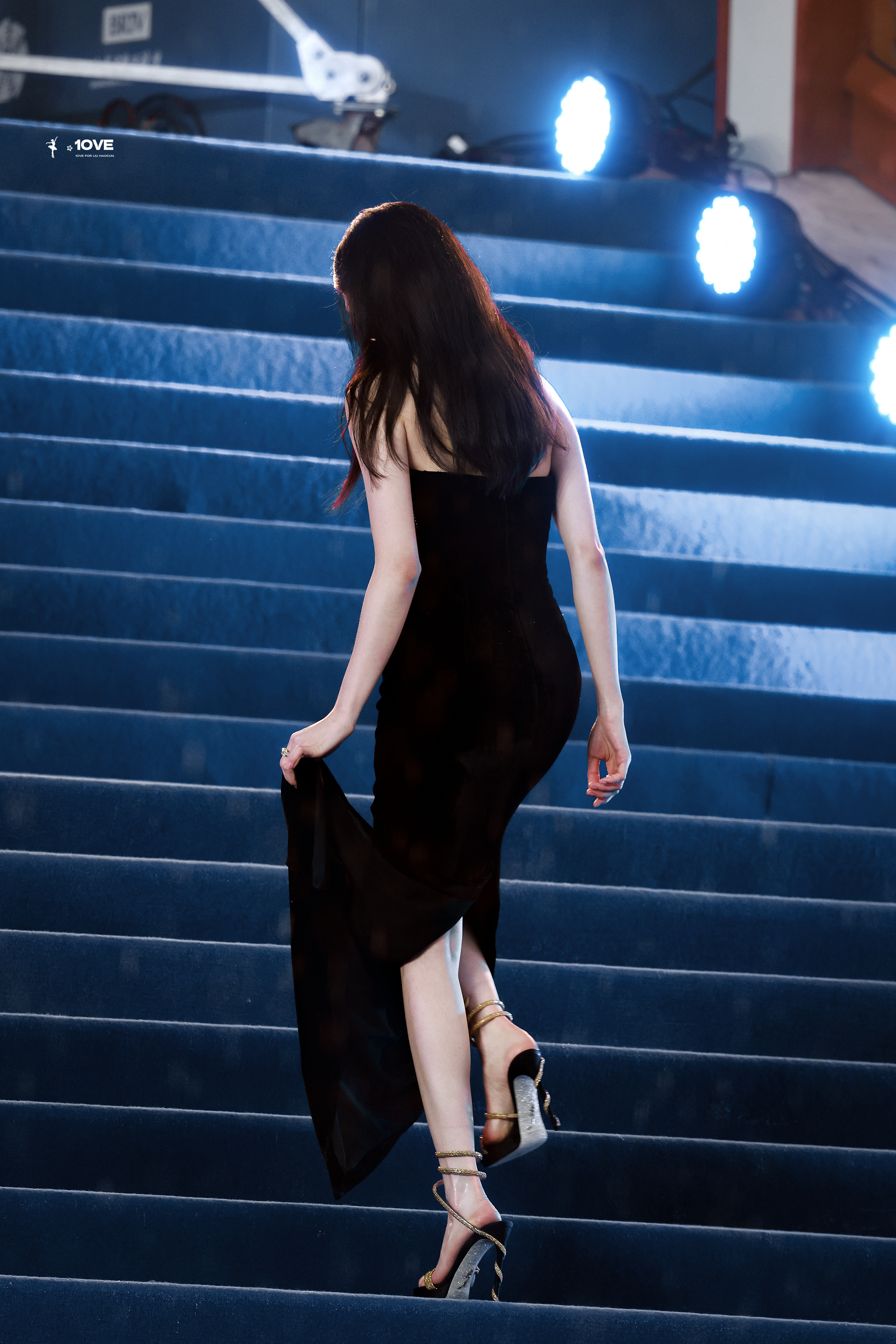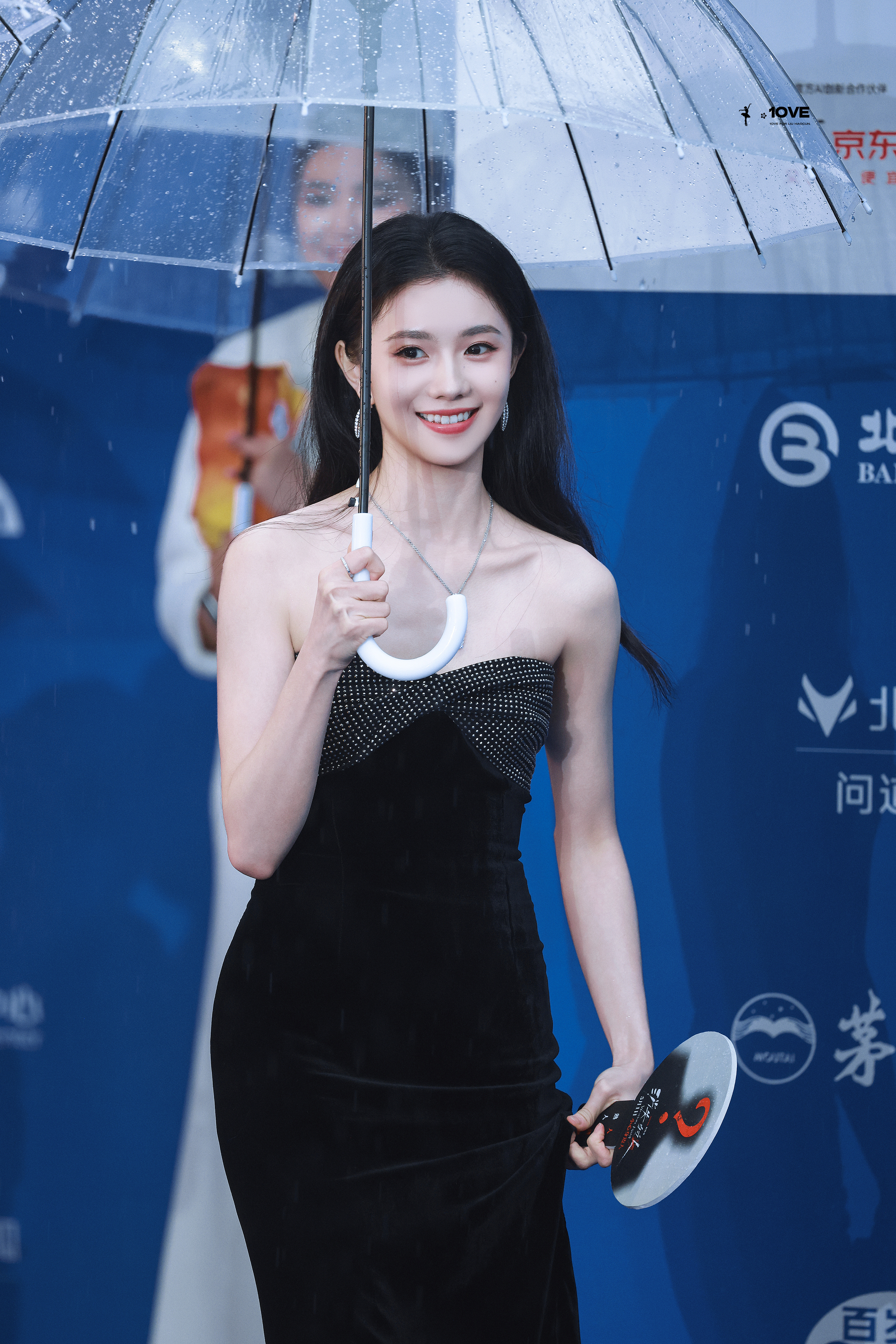 刘浩存 雨幕为幕,黑丝绒裙身裹着玲珑曲线,一抬眼便是清艳勾人的氛围感,红毯上的