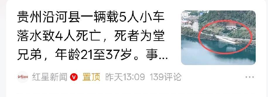 痛心!贵州一小汽车落水,车上5人除司机外全部遇难,落水者为堂兄弟,据附近商户反映,年纪都不大,二三十岁左右,太让人痛心了。