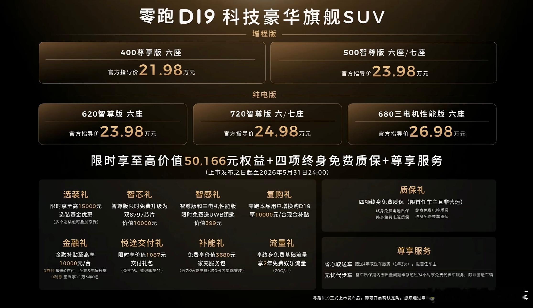 零跑D19定价太残暴,上市起售价21.98万!零跑终究不是半价的谁,零跑一直都是
