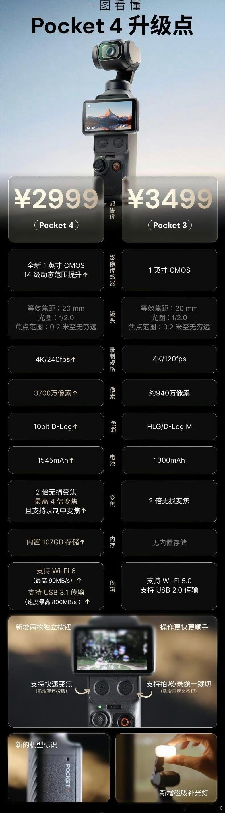 就是不那么惊艳,所以Pocket 4售价2999,比3低500。