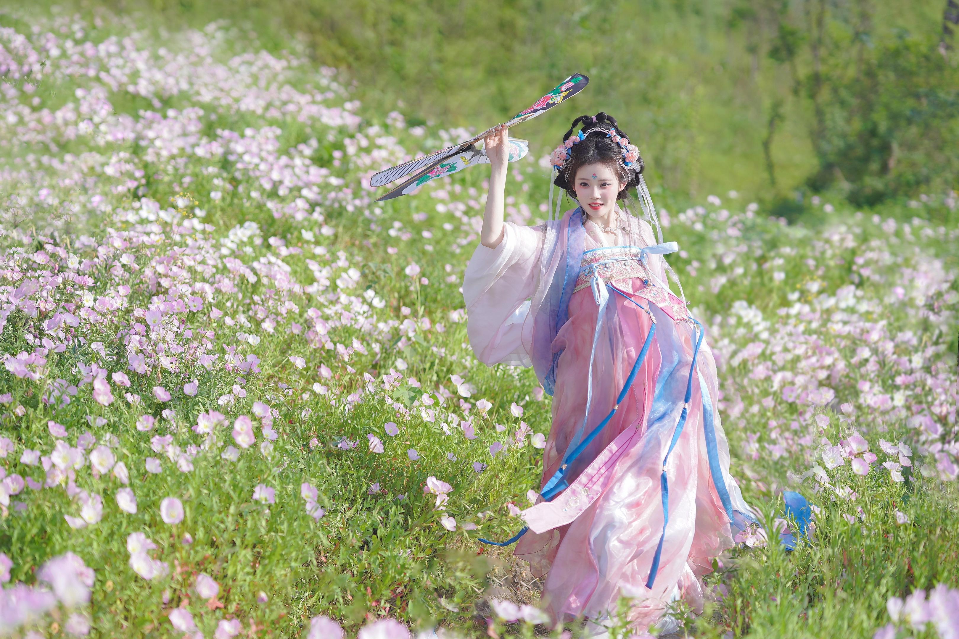 竹溪河公园的月见草开了,漫山遍野的粉色花。海。