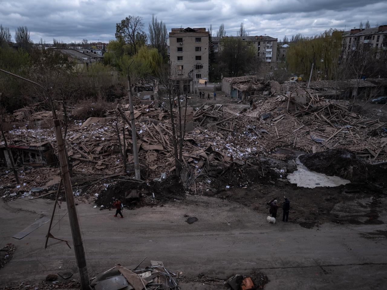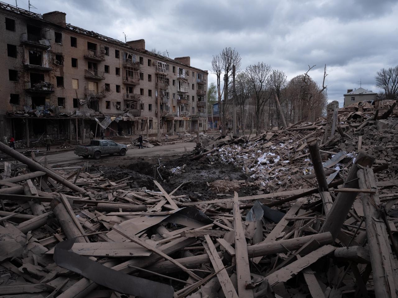 “昨天斯洛维扬斯克遭到FAB-1500袭击。”报道称,一枚俄罗斯滑翔炸弹(FAB-1500,配备UMPK套件——一种1500公斤高爆航空炸弹改装而成的制导滑翔弹药)于2026年4月15日袭击了斯洛维扬斯克(Slov'yans'k)。照片展示了袭击后的景象:撞击点的弹坑和破坏情况受损的建筑物和碎片