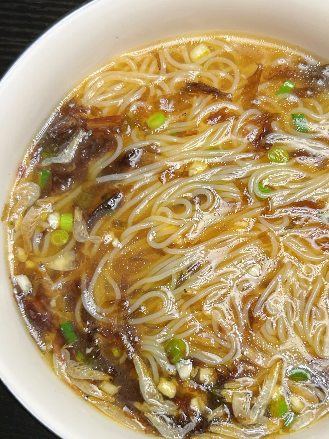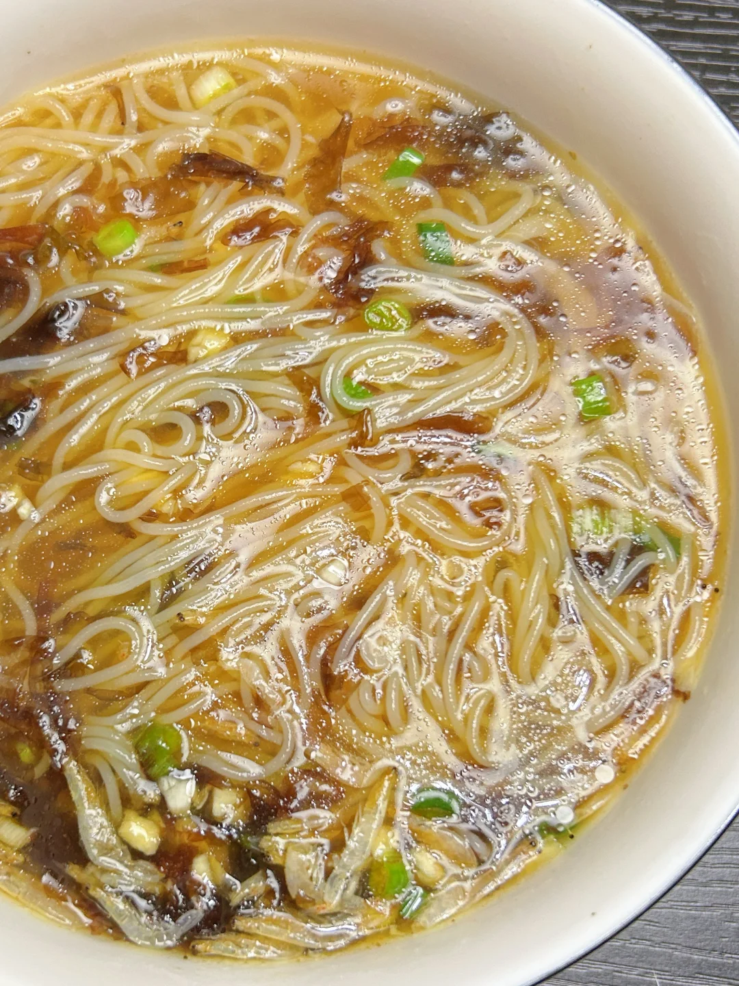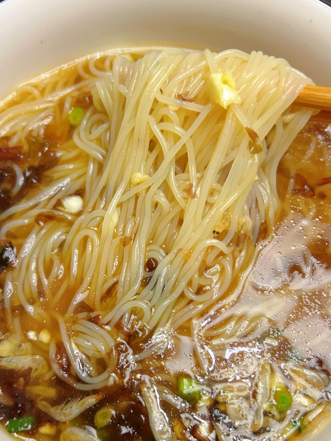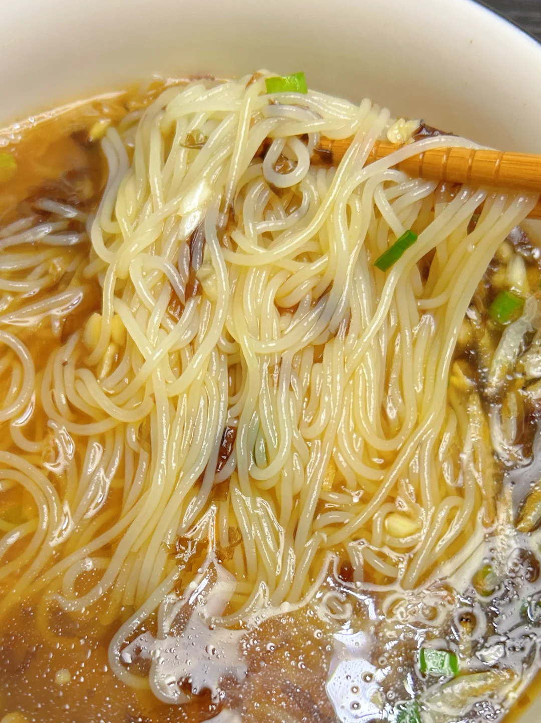 龙须蟹黄面。最近测血脂/尿酸,都降到正常值了,这些河鲜、海鲜也可以稍微吃点了。平