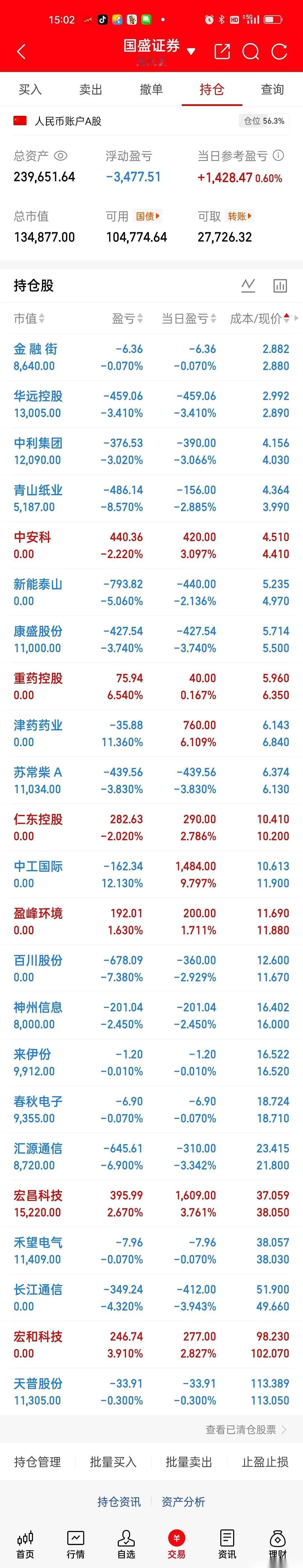 可我今天一通操作,全是在割肉。长江通信、中利集团、百川股份……鼠标点下去,一刀,再点下去,又一刀。当初买它们,图的就是个“低”,以为抄到了底。