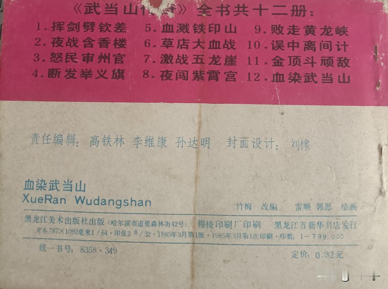 1985年3月,黑龙江美术出版社首次出版,穆棱印刷厂首次印刷,由黑龙江省新华书店发行,总印刷量799000册,定价0.32元(原创)。