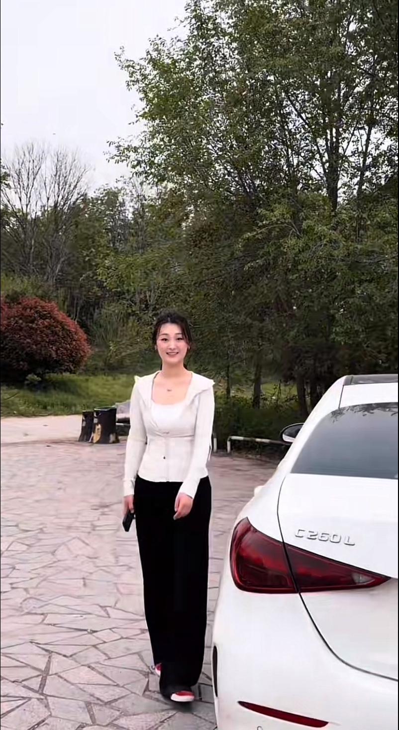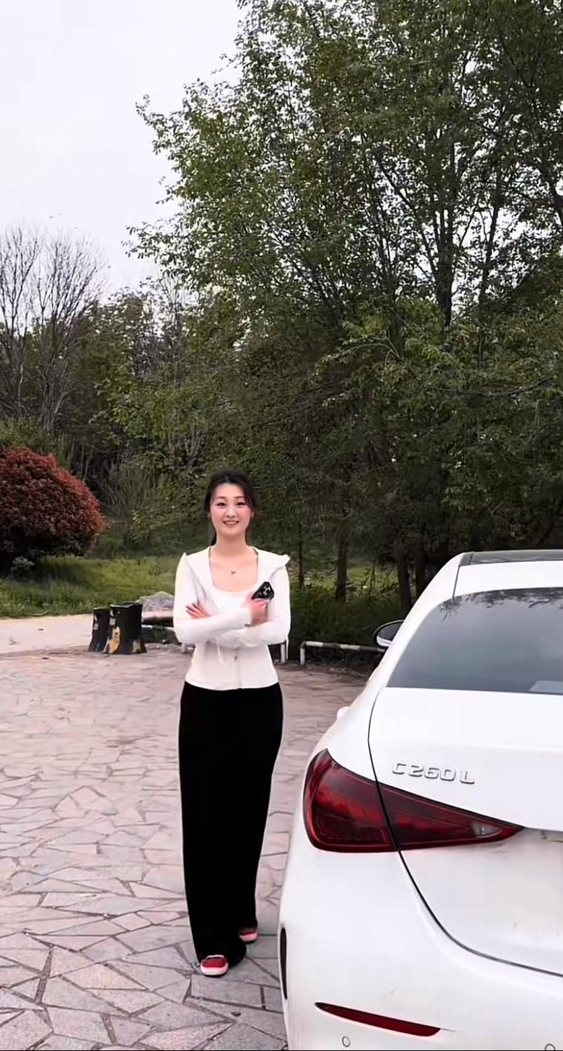她开的这款是奔驰C260L,是豪华品牌里很受欢迎的中型轿车,落地价大概在30-35万左右,属于很多人眼中的“入门级豪华标杆”。既有奔驰的品牌质感,加长轴距的后排空间也够宽敞,不管是日常代步还是出门撑场面都很合适,和她现在的气质真的太适配了。