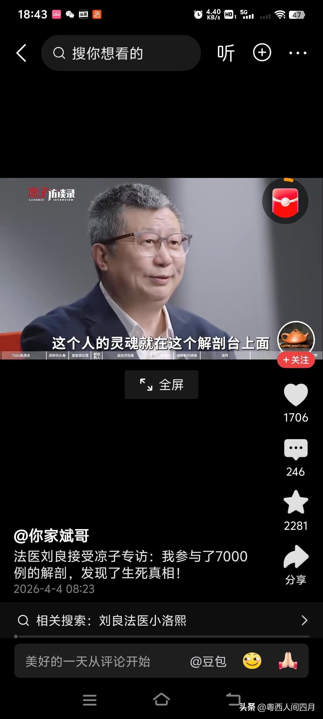 解剖了4000具遗体的法医刘良接受记者釆访时,也坚信有灵魂,也见过。