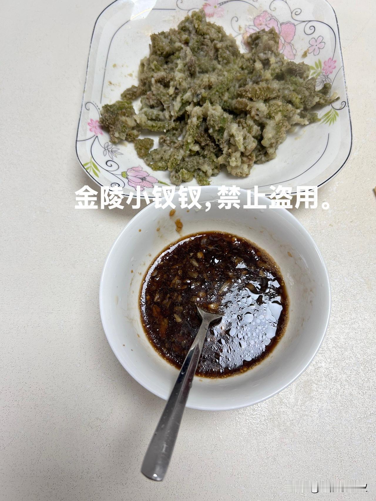 实话说我已经没有了吃的欲望,但还是不死心,沸水煮过冷水捞出,抓了一小把加上干面粉上锅蒸了,很快摆上了桌,然后用蒜泥调了个料汁,就迫不及待地自己吃上了,当然俺家除了我也没人吃。