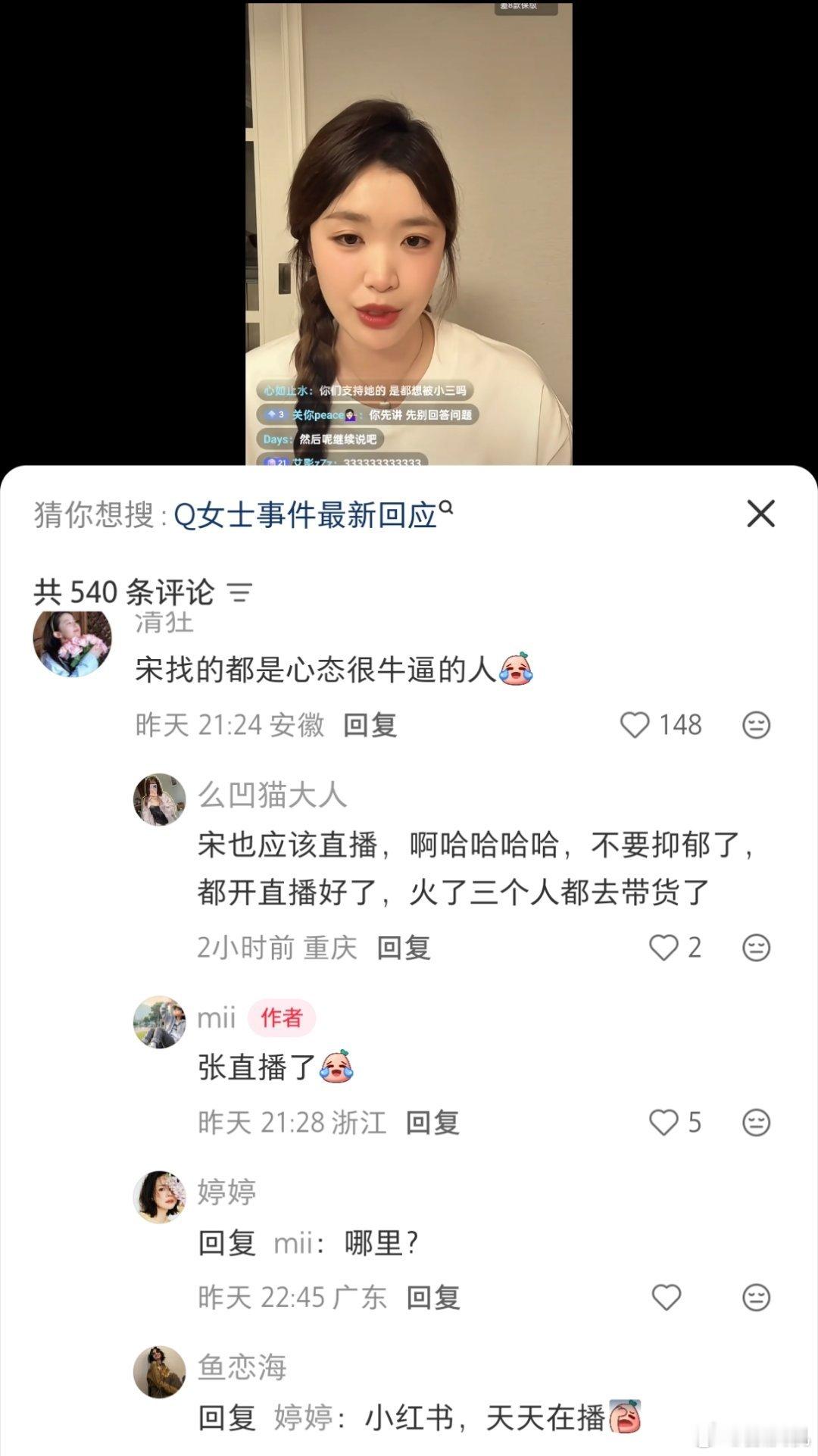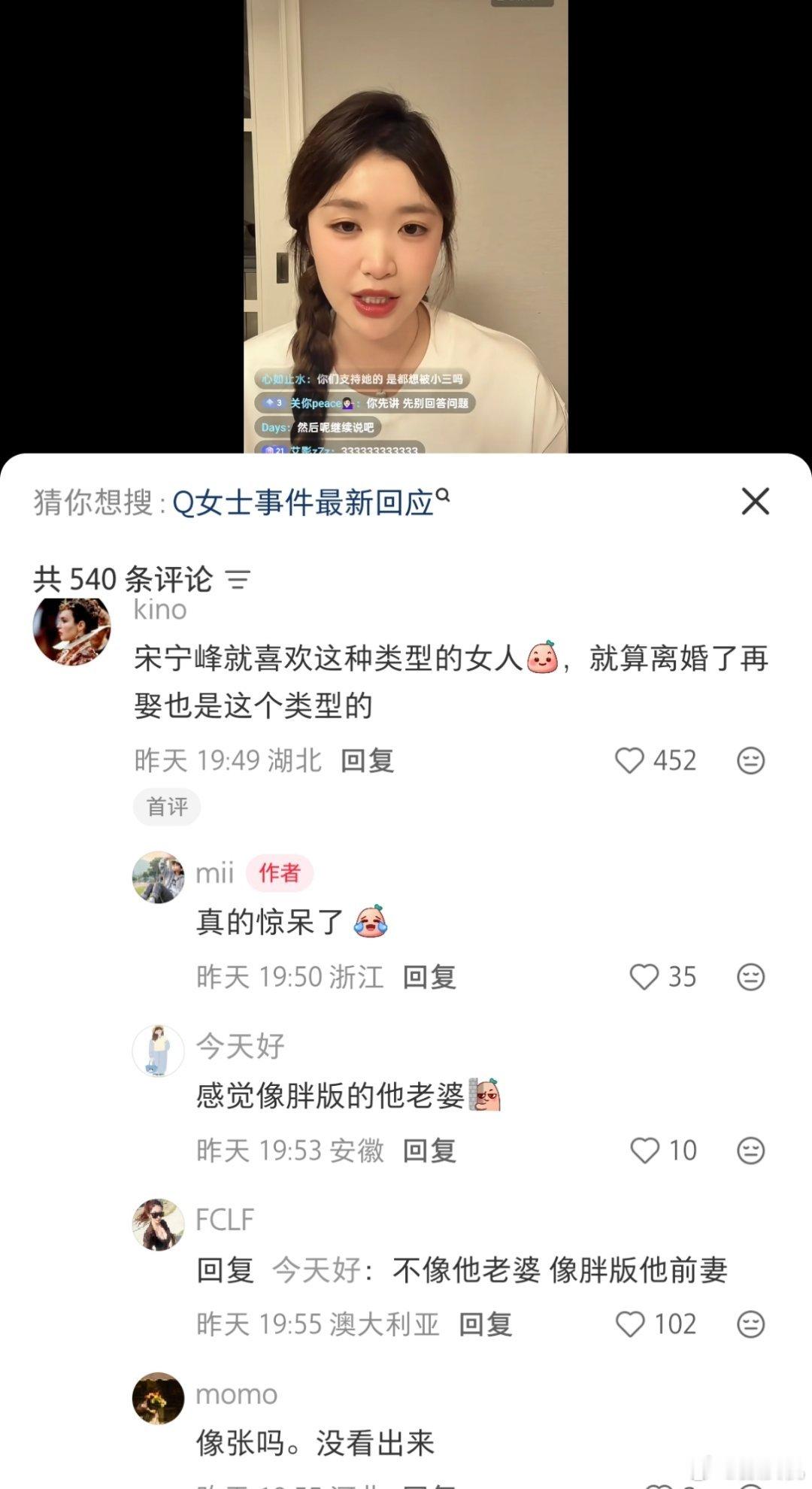 Q女士曝宋宁峰张婉婷视频时她在旁边网友说这个Q女士集齐了宋宁峰前妻齐溪的外形,和
