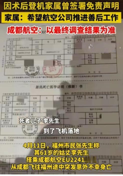 福建61岁男子飞机上身亡!9天前曾手术,家属登机前签免责声明!