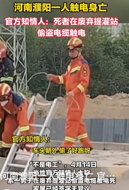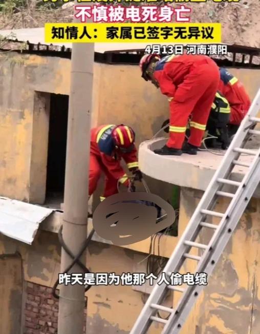 悲剧!河南濮阳一男子偷盗电缆,触电身亡! 2026年4月13日,河南濮阳一男子