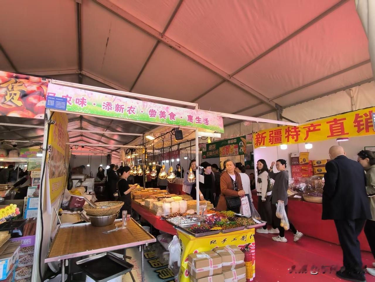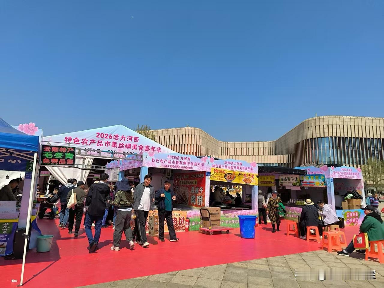 水上公园那的农副产品市集的人,又去河西文化中心了。前几天在人民公园就有发广告的,原班人马在文化中心彩悦城那又摆上了。本来是昨天开始,因为下雨没摆成,来遛的人还不少,遛了一圈看看,还是那些商品,东西也不便宜。