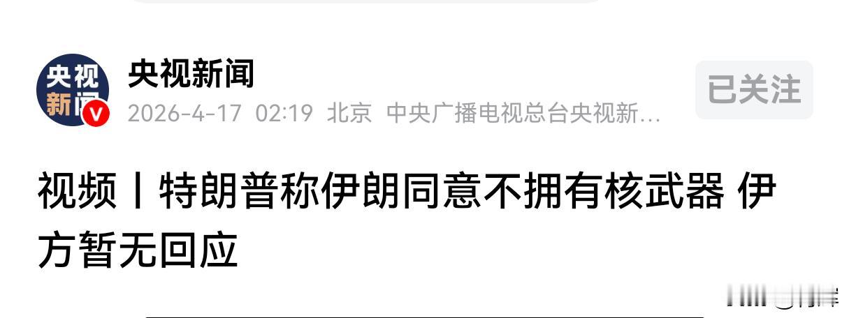 特朗普现在的很多言论实际上已经没有可信度了,不过在我看来,他说的伊朗已经同意不拥有核武器这个说法应该是没毛病的。因为一直到现在为止,伊朗从来没有宣称自己要拥有核武器。