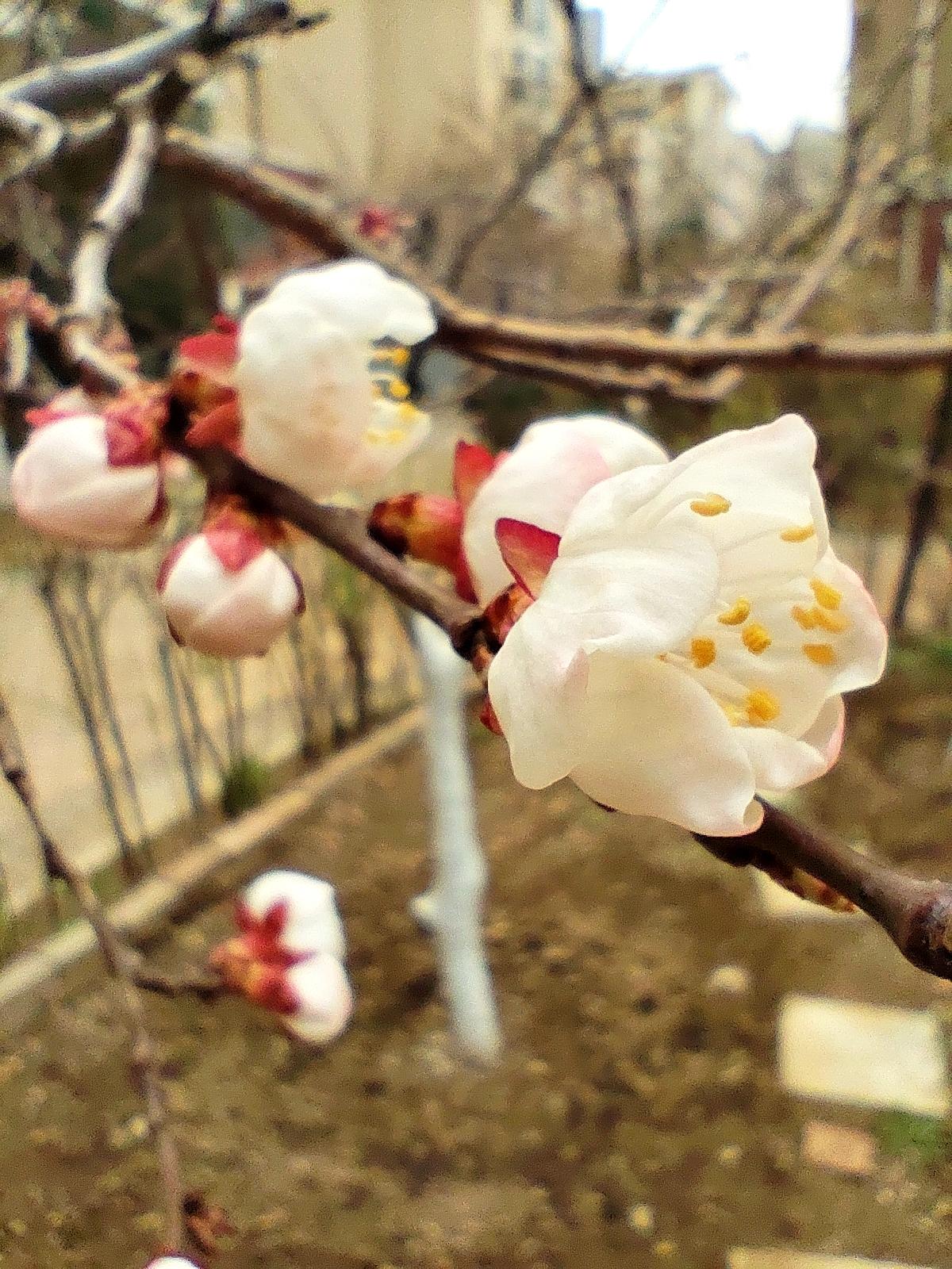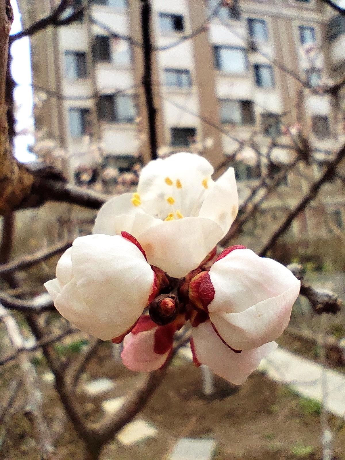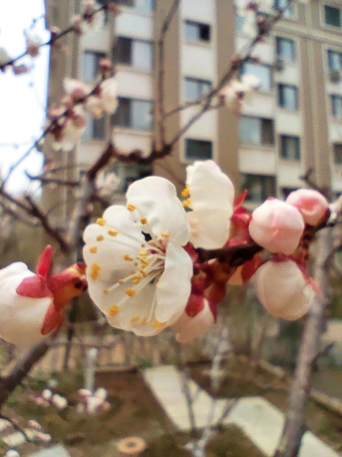 杏树开花别样美 不经意间,沈阳一居民小区的杏花开了。花形美丽,花色洁白,