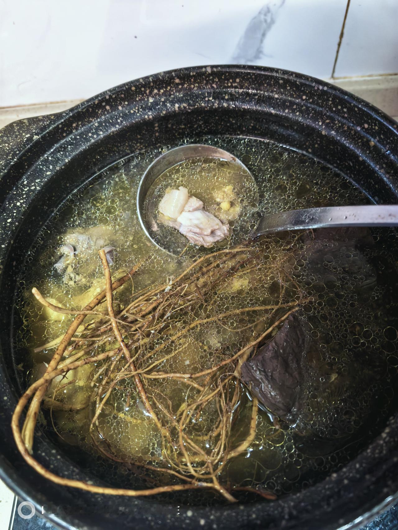 根据老莫说的药材,我也自做了一个鸡煲,汤真的好喝,鸡真的好吃,首先要买一个靓的鸡,走地的喂玉米和糠的,我放的药材是五指毛桃,牛大力,北芪,薏米,肇实,陈皮各适量,红枣五个,先将药材煲一个小时,再放鸡煮滚,大概八分钟可以吃了,再自己做一碟点料,味道真不错,吃鸡喝汤,春天去湿。药材和莫氏有点不一样。但功效差不多。各有各的味道。牛大力也是祛湿的药材,平常煲汤也喜欢放。
