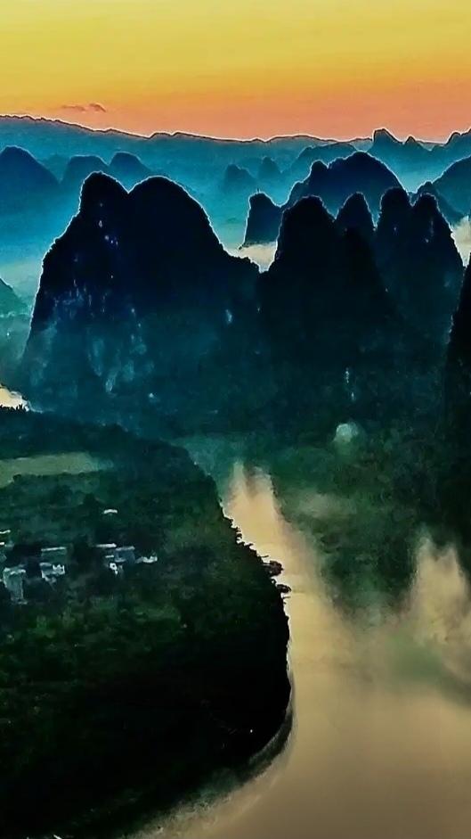 美景图片分亨《大美阳朔:漓江晨曦》。手机摄影于相公山
