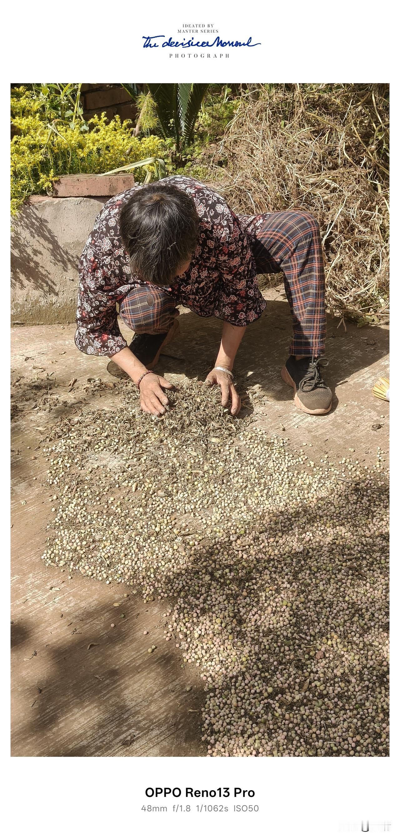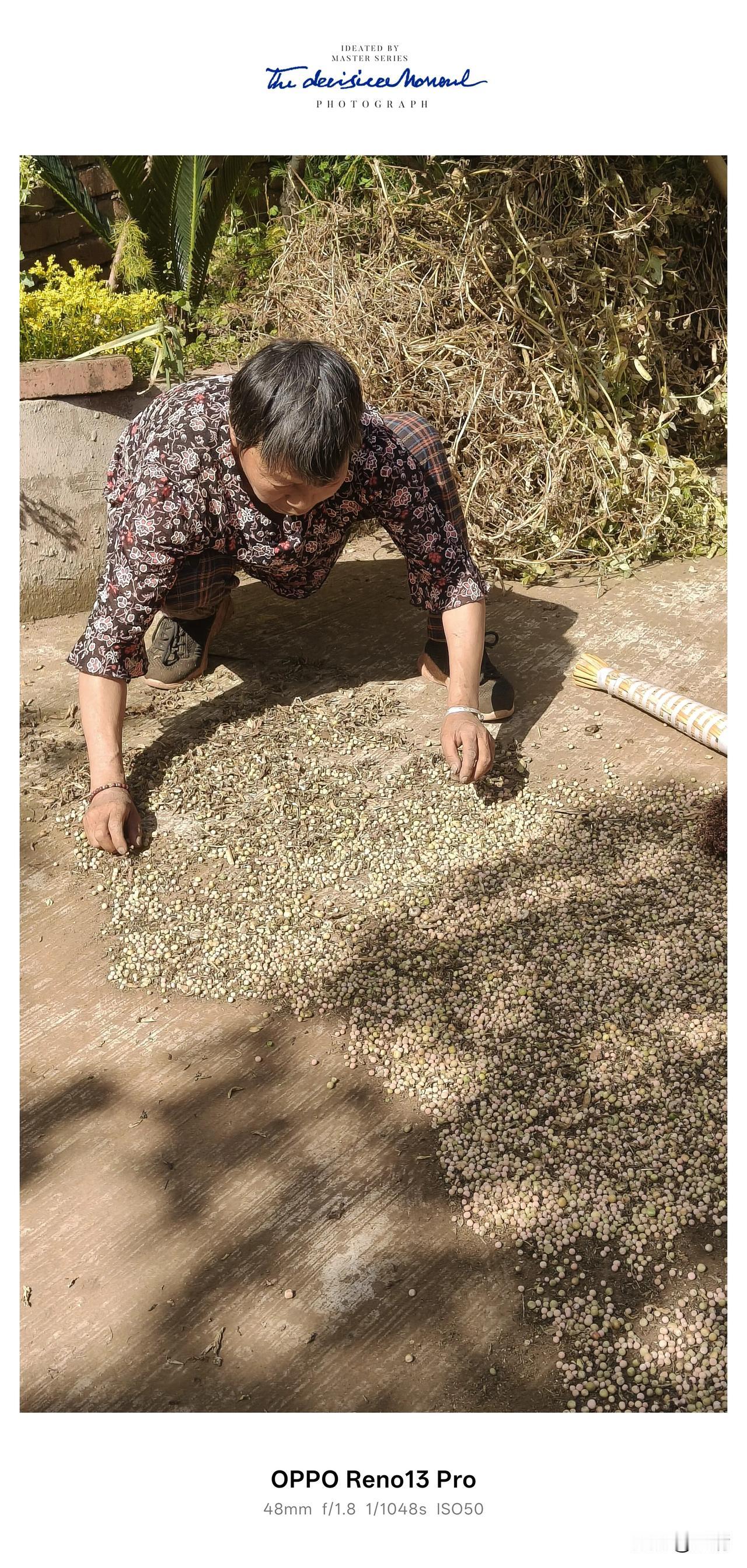 农村正是农忙的季节,前期种玉米,花生,播稻谷,现在就是收豌豆,胡豆,油菜籽的时节,农民能穿个啥?天天换都是一身稀脏!干不完的农活,流不完的汗水!粮食成熟 收豌豆