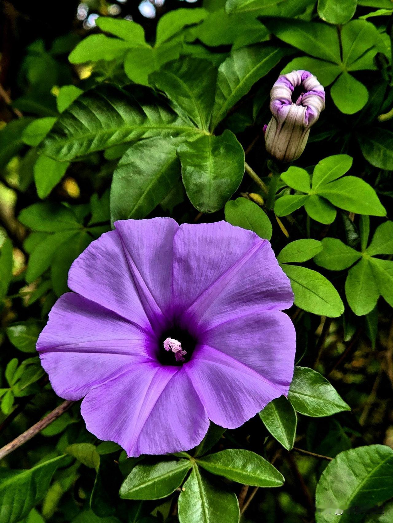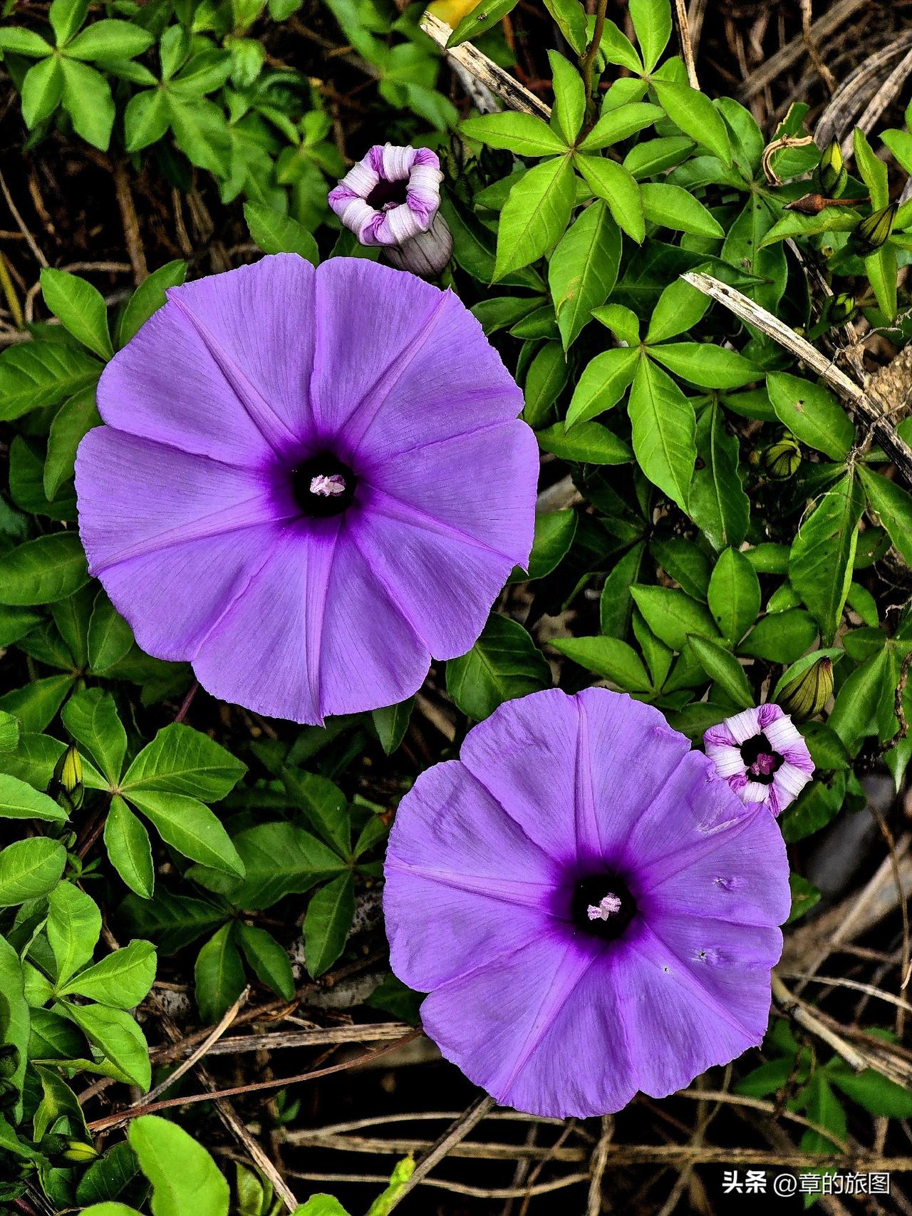 初夏,美丽的五爪金龙开始绽放,它常常被人混淆为牵牛花。五爪金龙与牵牛花虽同属旋花科且花形酷似,但五爪金龙叶片掌状深裂且全株无毛,而牵牛花叶片多呈心形或浅裂且全株被毛。