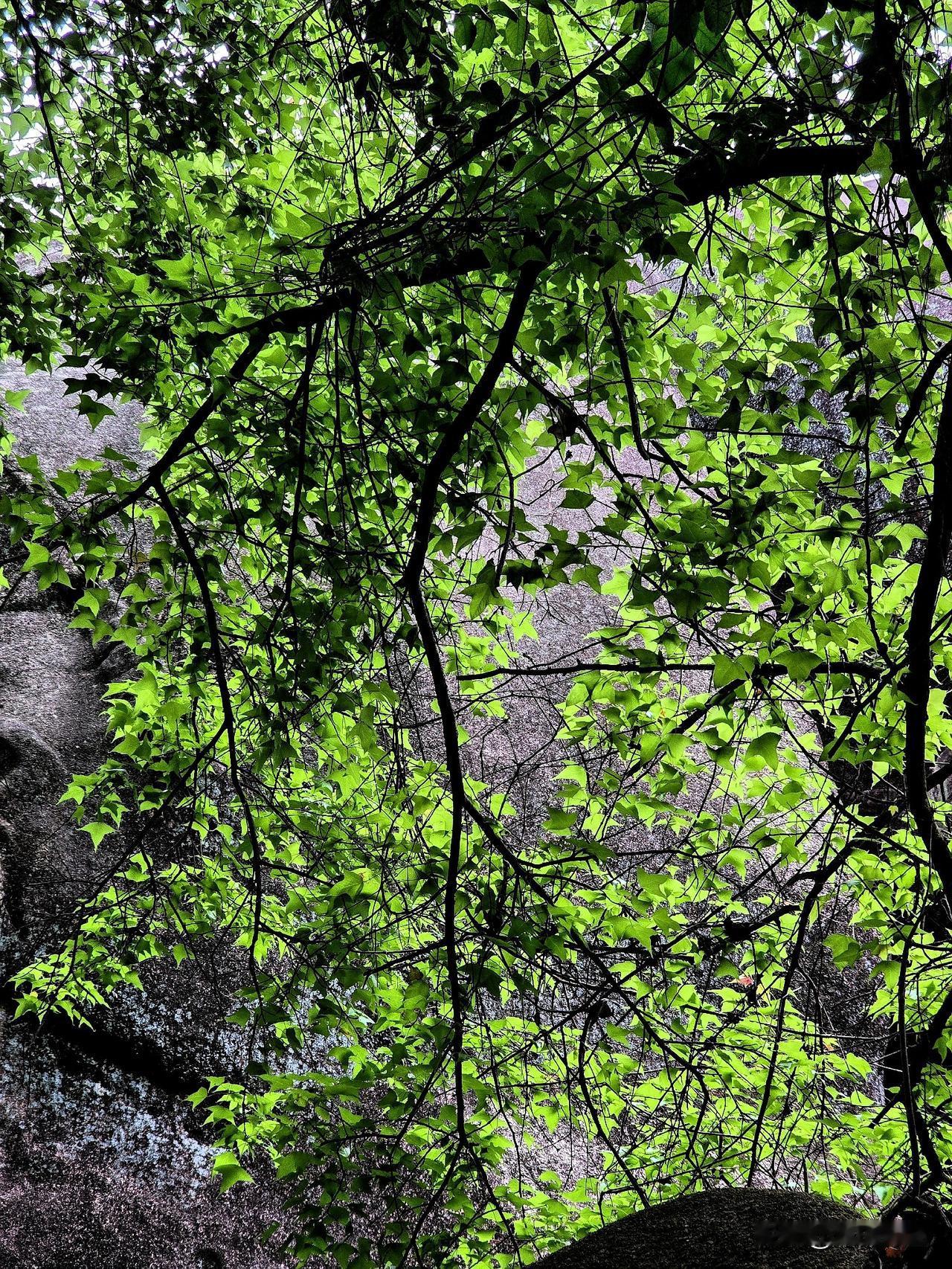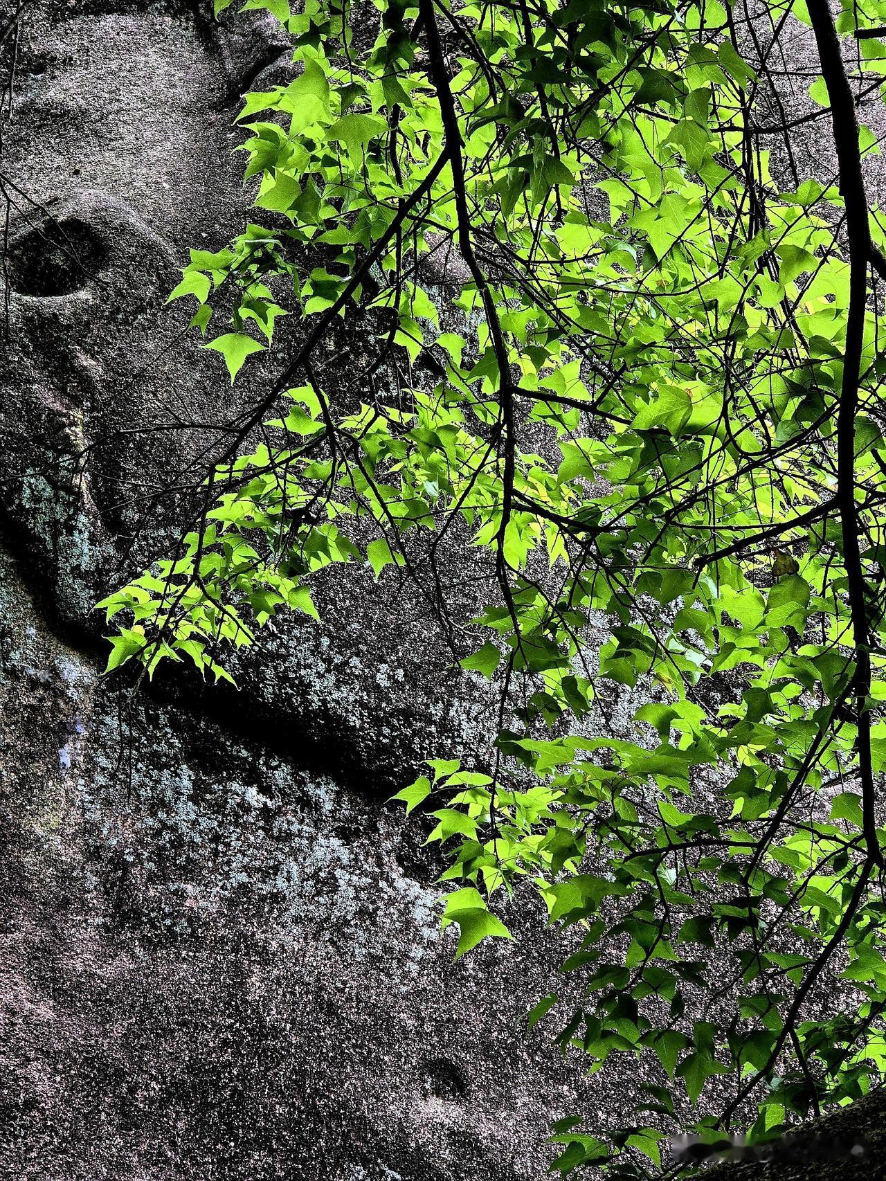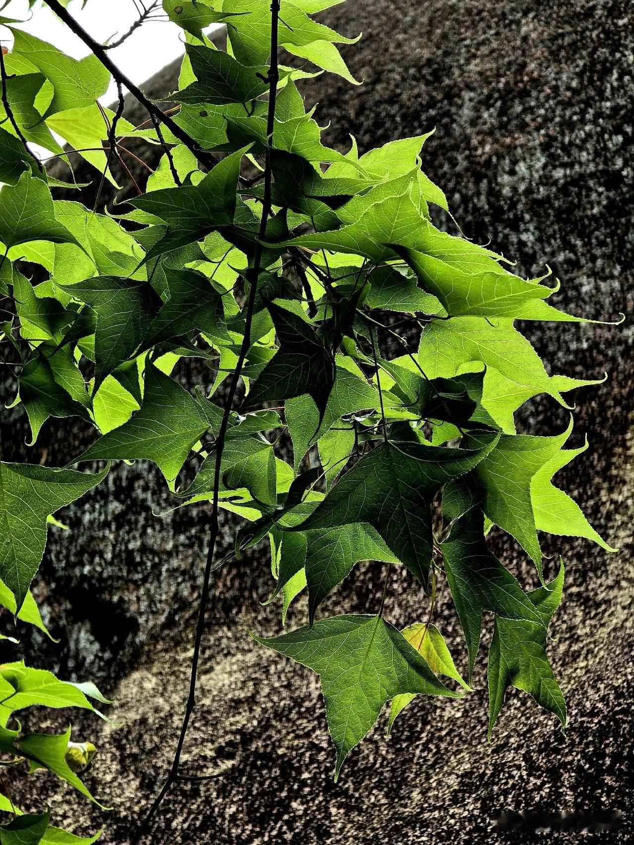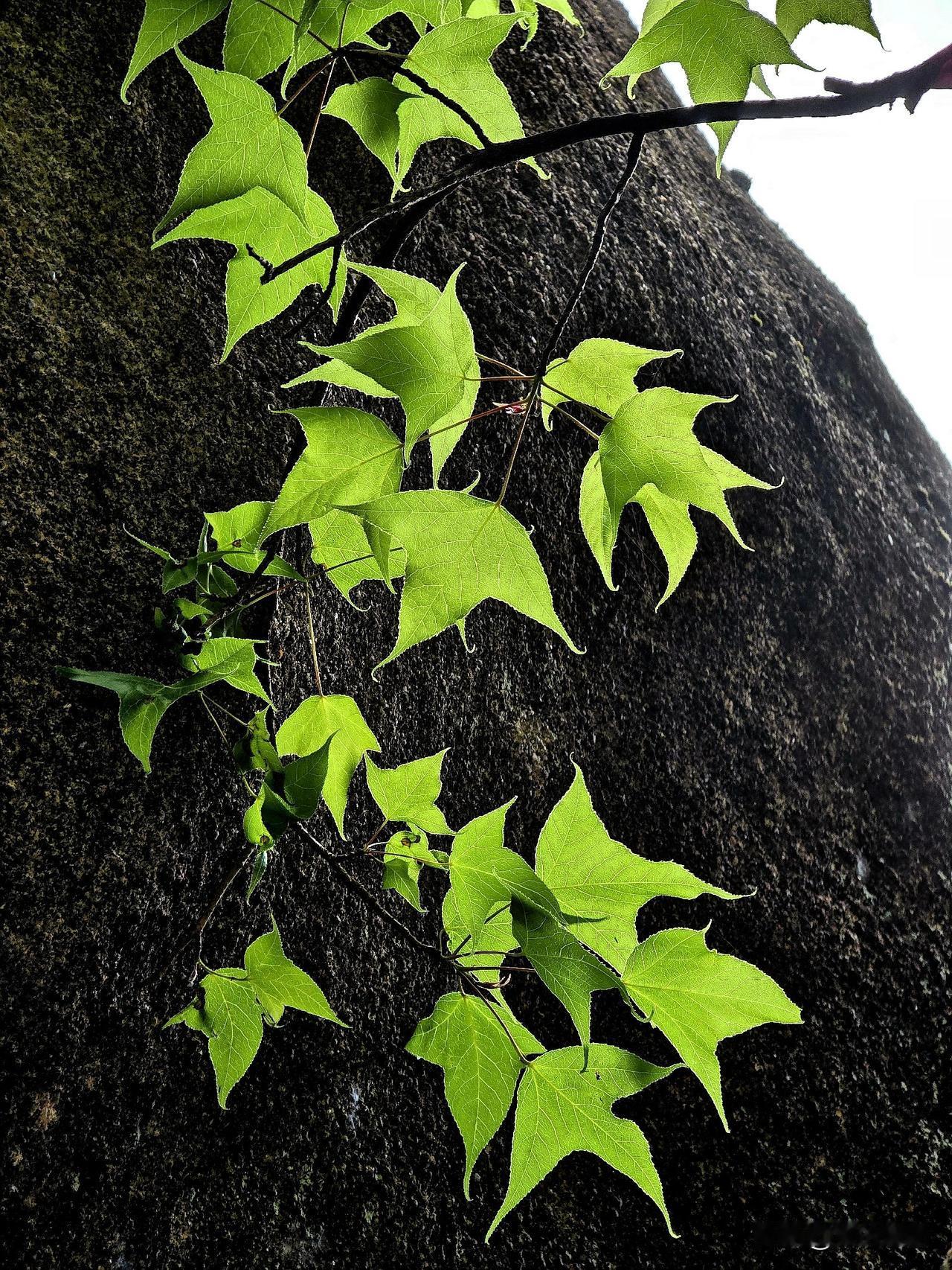 春天,山中枫香树 危岩侧畔立孤标,百尺苍干拂碧霄。 老干凌云遮晓日,新枝吐翠沐春