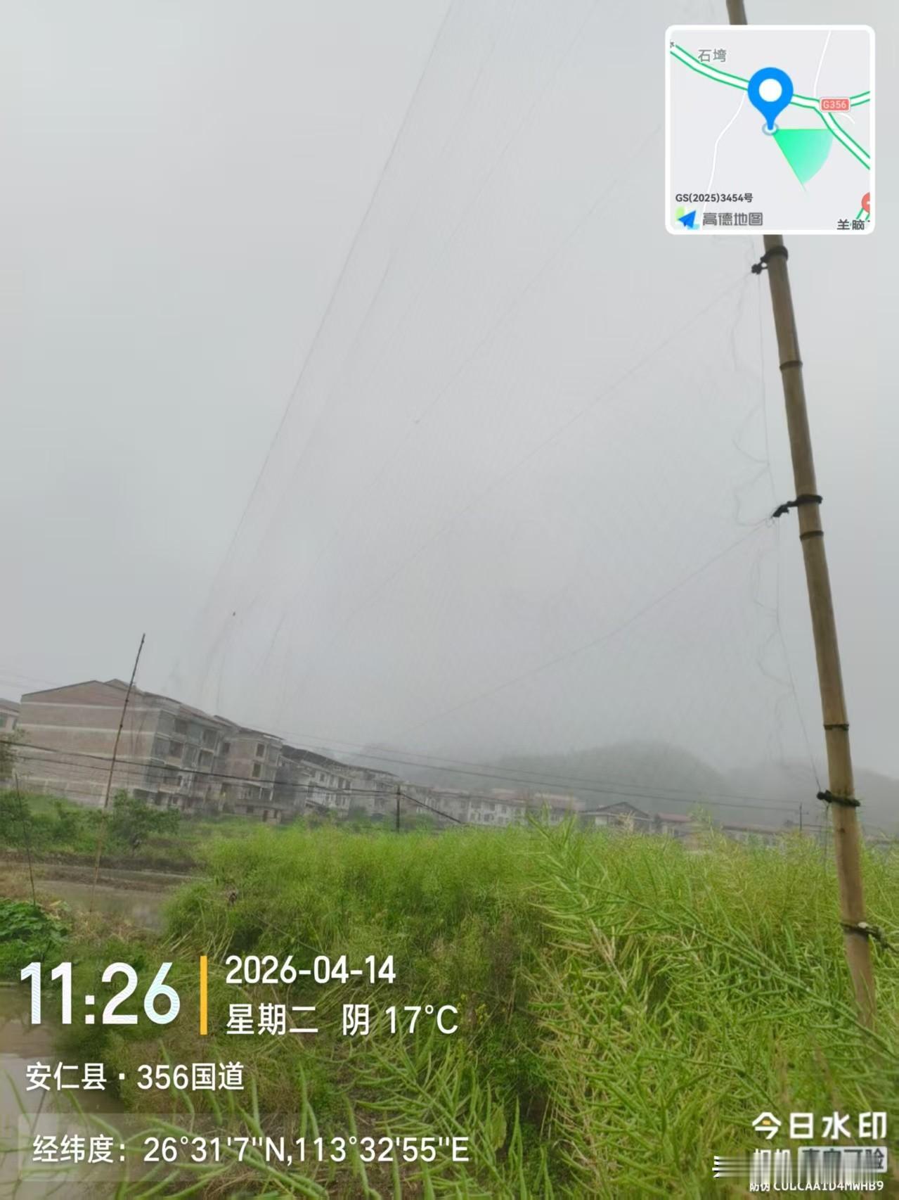 志愿者在湖南省郴州市安仁县金紫仙镇356国道沿线,发现多处非法架设的捕鸟网,网上