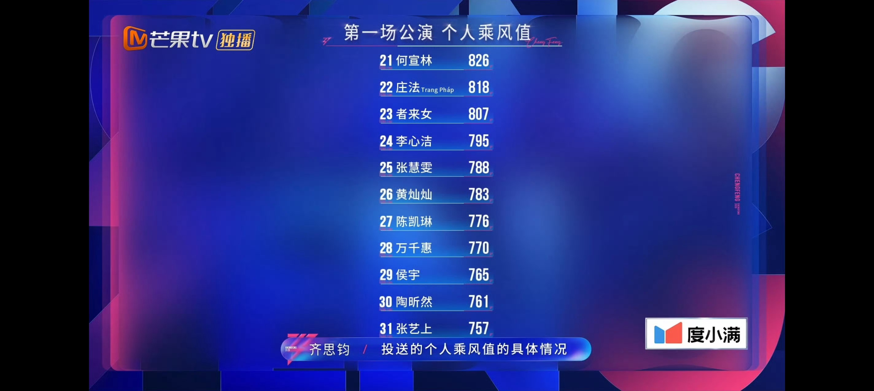 张艺上个人乘风值垫底乘风2026第一次公演个人喜爱度排名公布了,张艺上倒数第一,