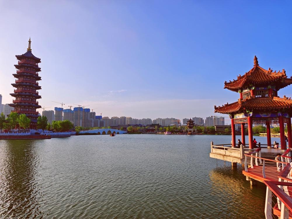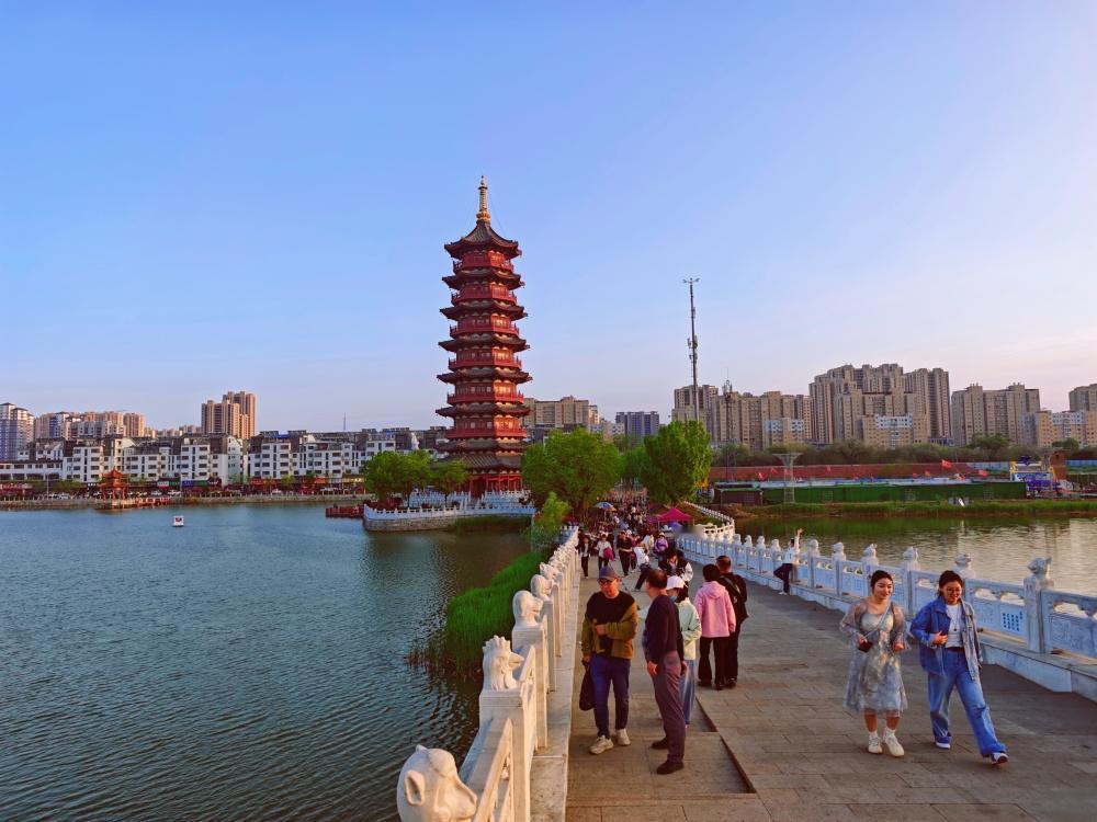 【登永安塔览曹州古城暮色】2026菏泽牡丹节期间,白天赏花游后,傍晚漫步菏泽曹州