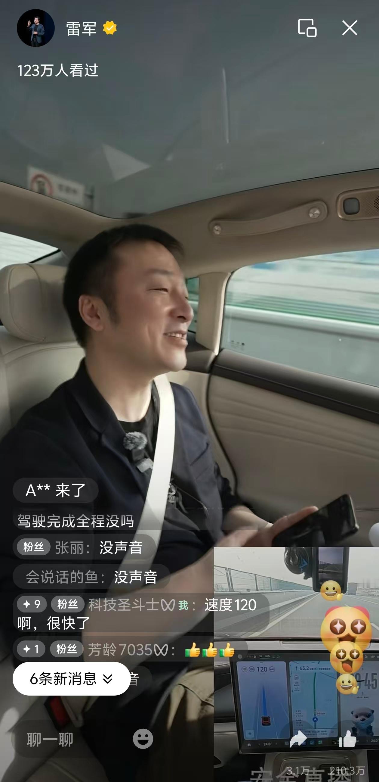 太拼了,最近一周连轴转,网友提醒雷军直播过后,肯定又一堆黑稿,雷军直接回应:那咋办?不能因为有黑稿,我们就不说话了?感觉那个生死看淡不服就干的雷总又回来了。刚看了下,速度120,实测很有底气呀!雷军笑称直播超变态超疯狂