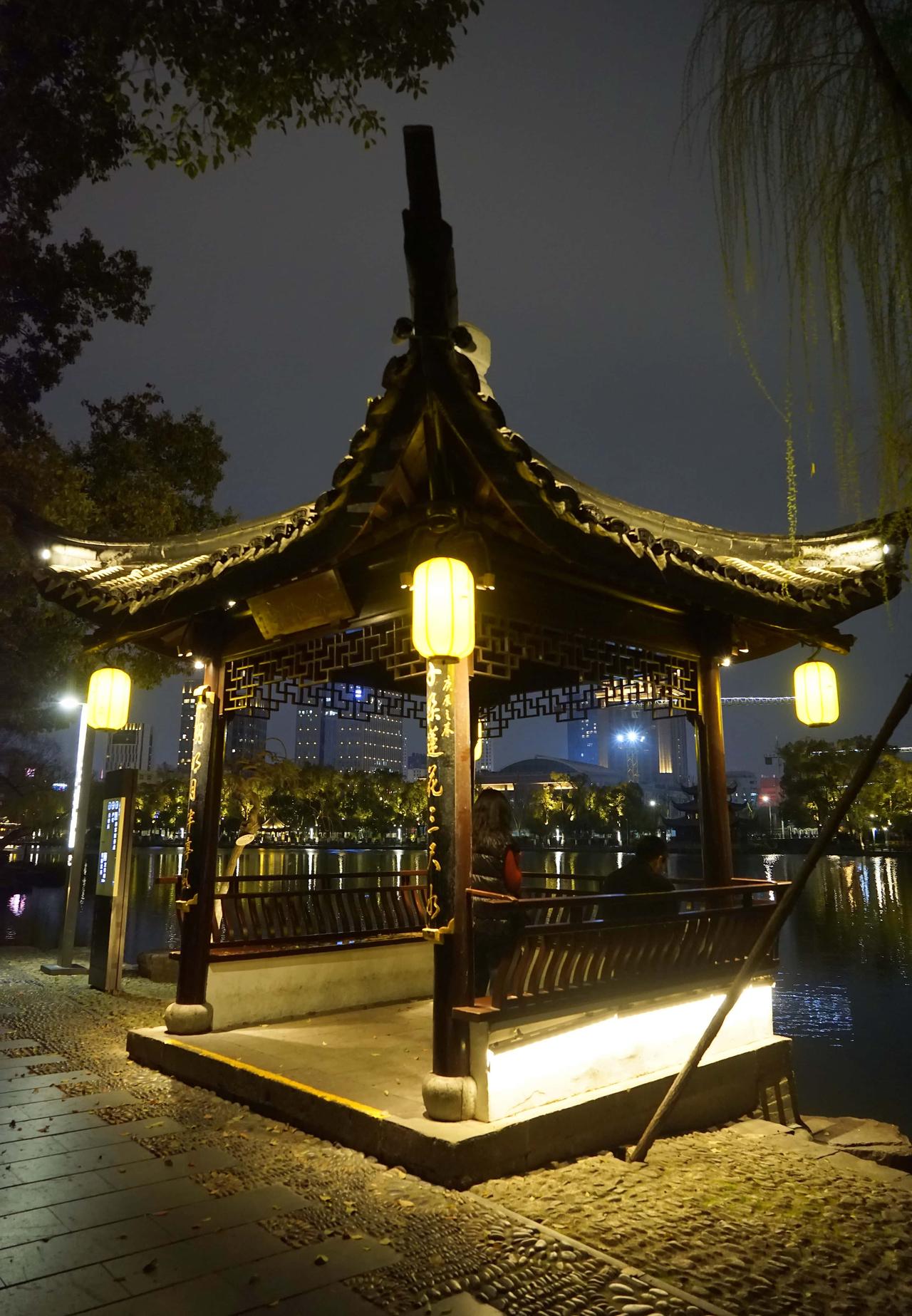 夜幕降临,月湖更显迷人。灯光映照下的湖水幽静璀璨,沿湖漫步,细听水波轻响,感受城市的温柔脉搏,让人对月湖与宁波这座城,生出更深的眷恋。