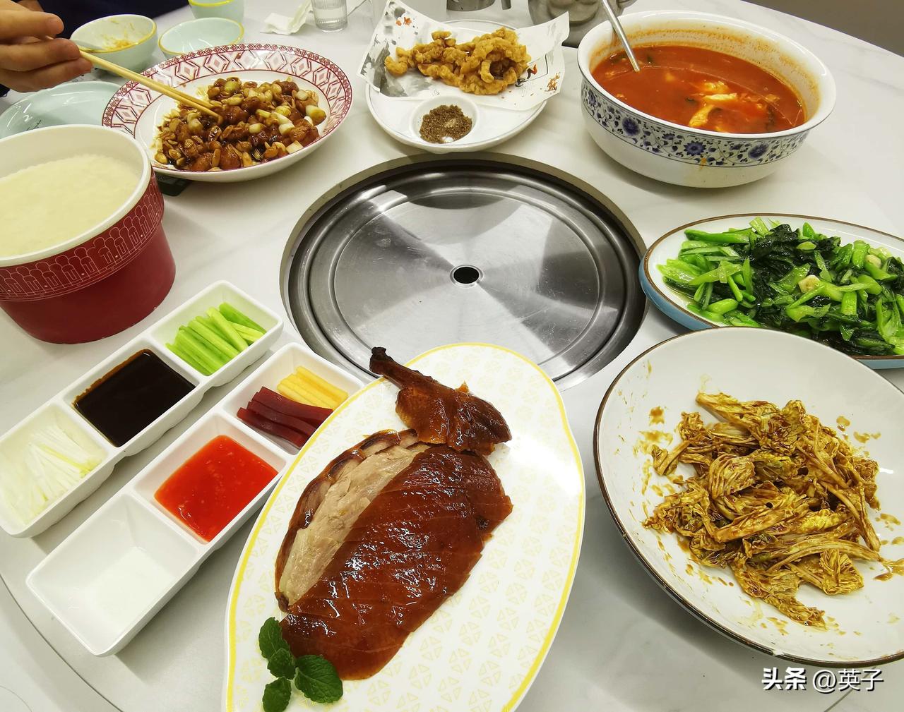 烤鸭是必点招牌菜,鸭皮金黄酥脆,鸭肉鲜嫩多汁,地道风味让人回味。宫保鸡丁、小酥肉、广东菜心和乾隆白菜也是我们亲点,就想看看他家南北通吃的菜肴做的如何?其中乾隆白菜最是惊艳——醇厚芝麻酱裹着爽脆菜叶,甜香与酸爽交织,上桌便被一扫而空。原本担心90多岁的老妈嚼不动小酥肉,谁料外酥里嫩的口感,老人家吃得格外顺口。