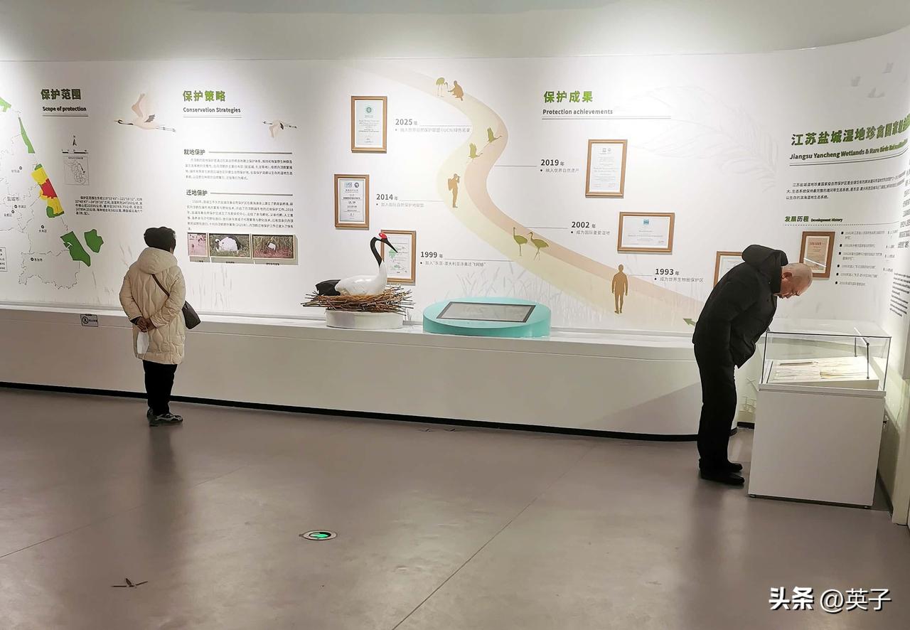 漫步湿地,水禽嬉戏、珍禽和鸣,令人心旷神怡。望鹤亭是观景拍照最佳点位。参观丹顶鹤博物馆,可全面了解丹顶鹤习性与迁徙故事,更被徐秀娟护鹤牺牲的事迹所深深打动。