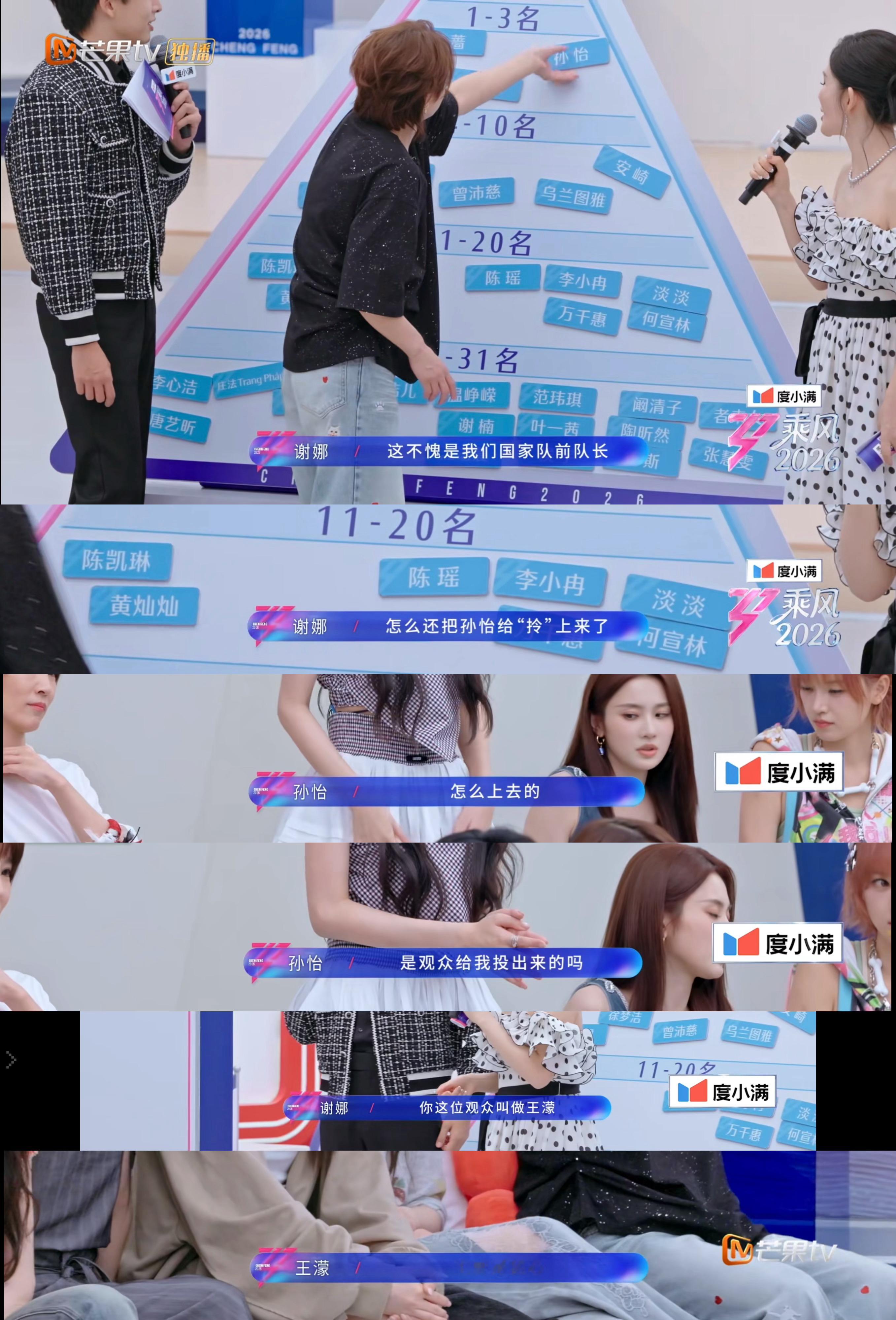 乘风二公真人秀《乘风2026》预测个人一公乘风值排名环节,孙怡被王濛从21-31拉到了前三名,问王濛原因她说是因为私心