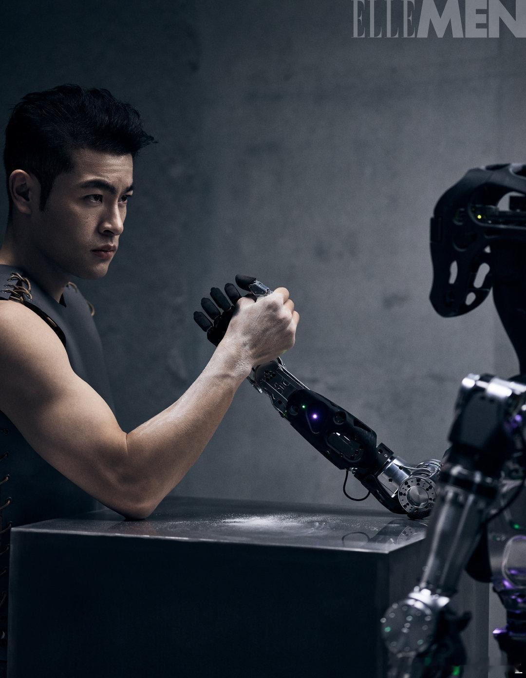 宁忠岩和机器人掰手腕 更新社媒,晒出自己最新的时尚大片“带着纪录与未来对话,过程