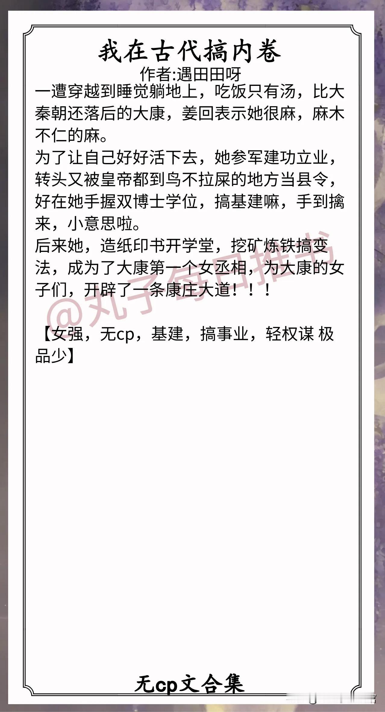 6.《我在古代搞内卷》作者:遇田田呀(精明能干女主,穿越,基建,搞事业,女强爽文,无cp)