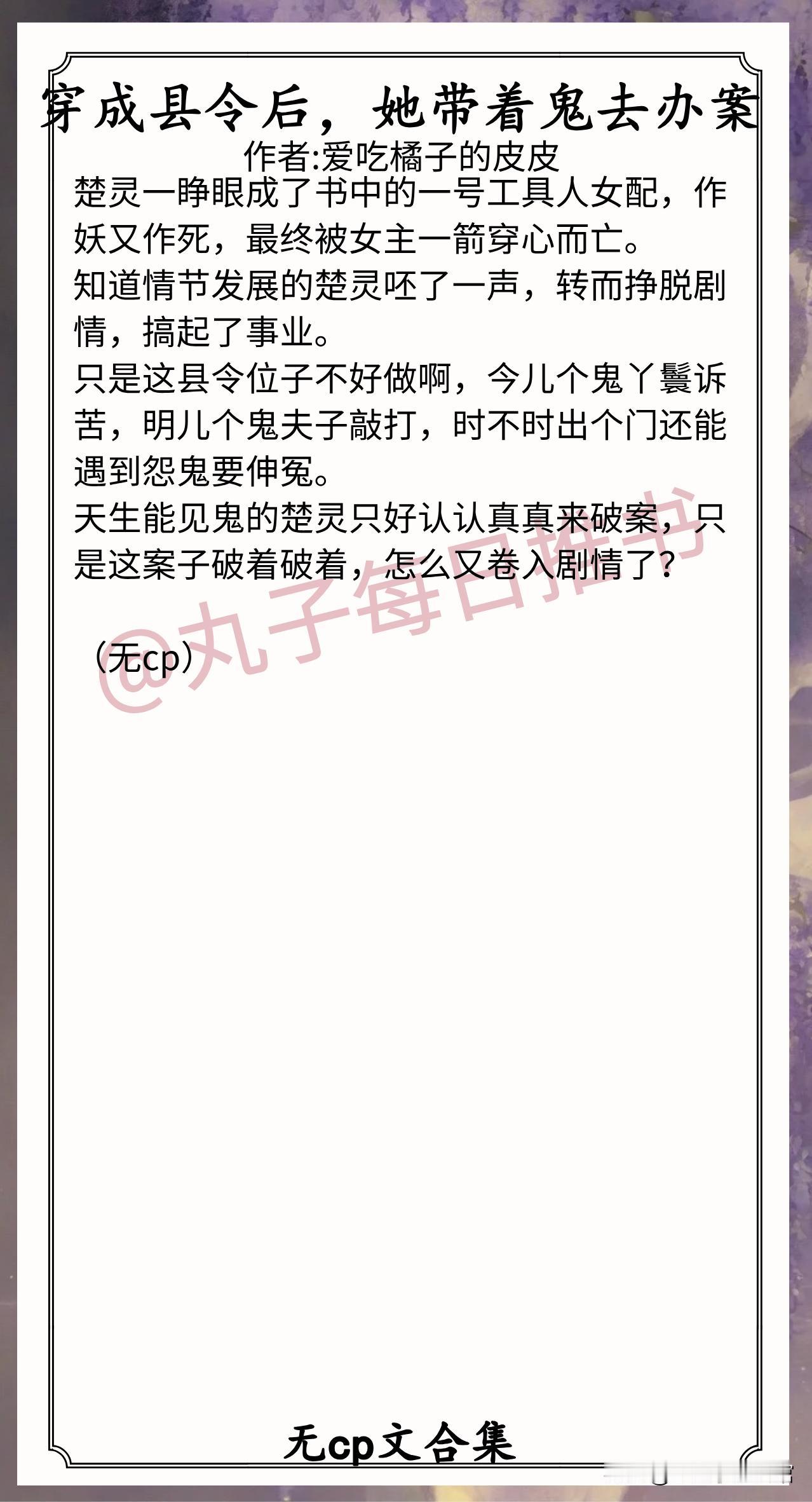 7.《穿成县令后,她带着鬼去办案》作者:爱吃橘子的皮皮(事业批县令,穿书,女配逆袭,悬疑破案,无cp)