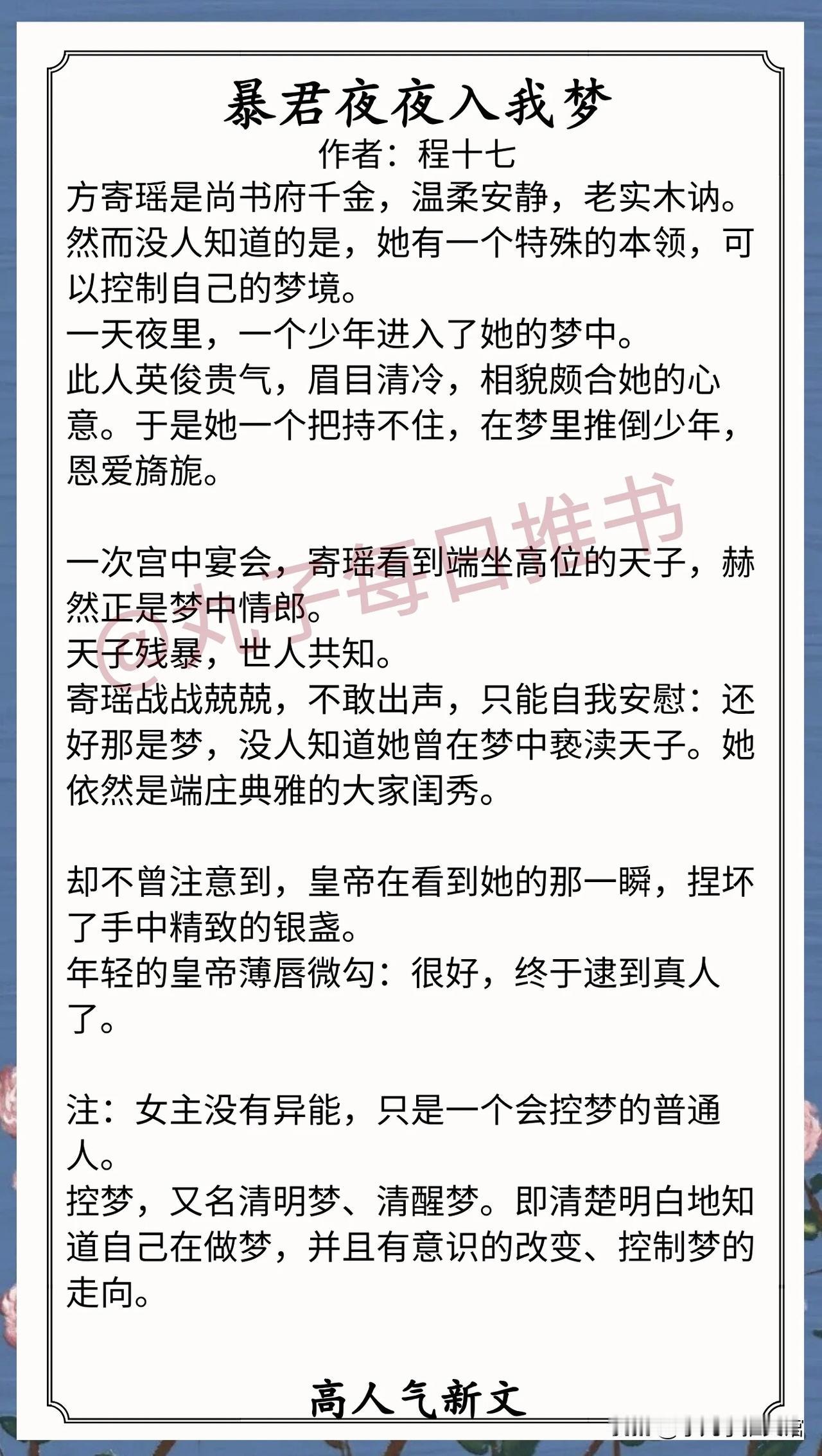 7. 《暴君夜夜入我梦》作者:程十七(温软贵女vs清冷帝王,梦里纠缠,古言甜宠文)