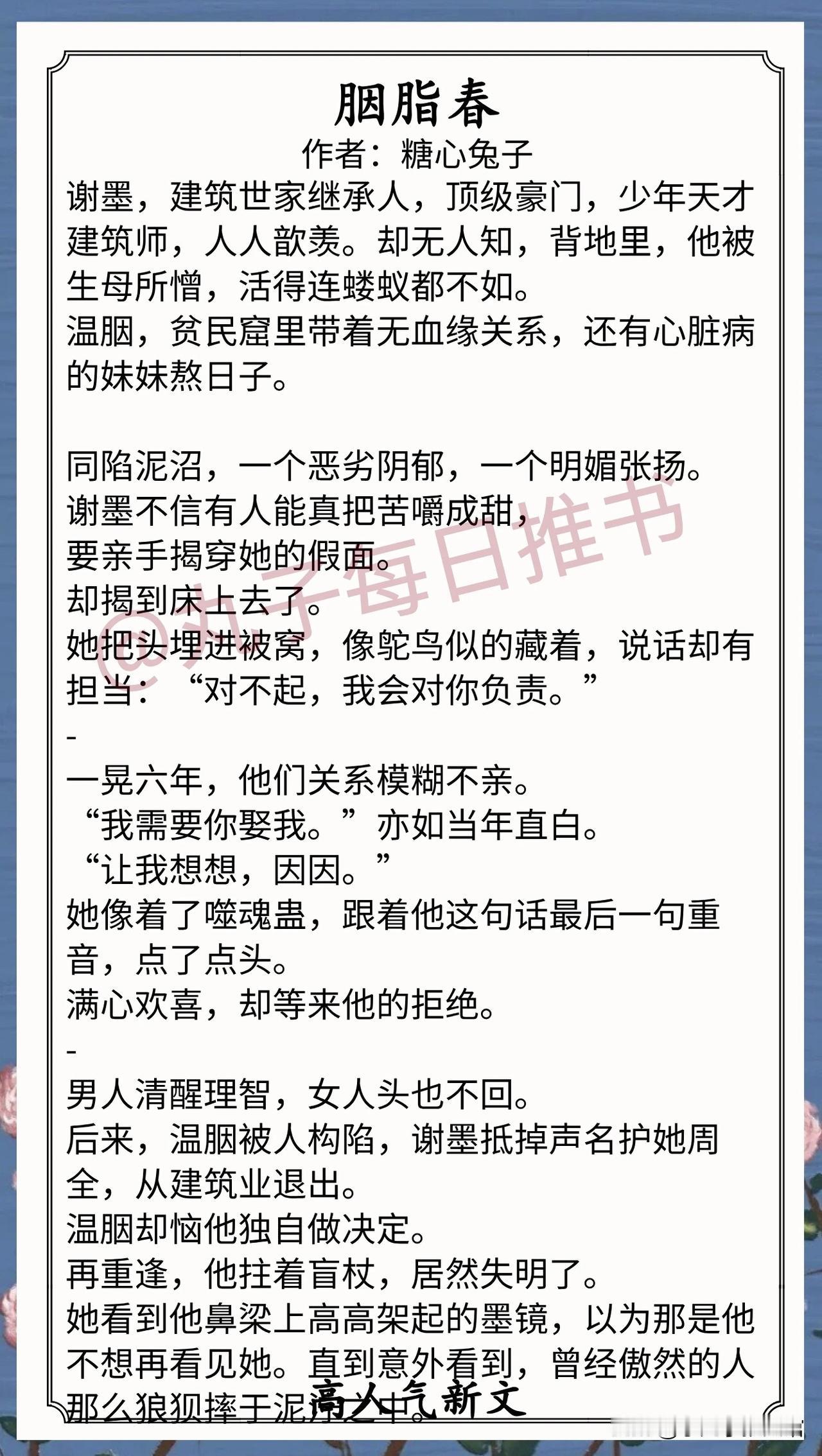 5. 《胭脂春》作者:糖心兔子(倔强洒脱vs敏感年上,纠缠不休,年龄差7岁)