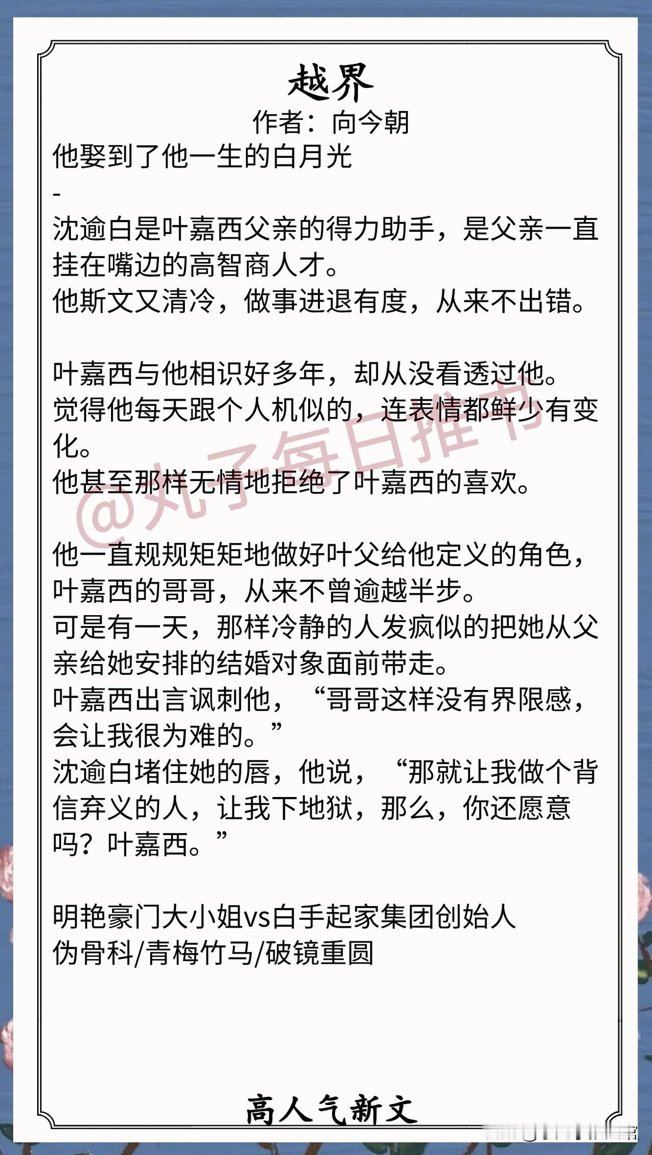 8. 《越界》作者:向今朝(明艳豪门大小姐vs白手起家集团创始人,伪骨科,青梅竹马,破镜重圆)