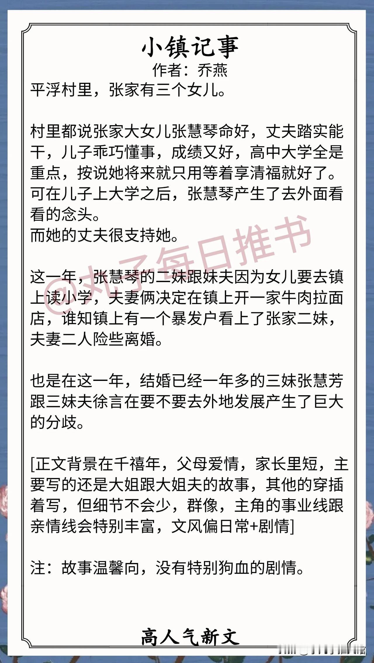 9. 《小镇记事》作者:乔燕(成长型女vs老实能干男,婚恋,父母爱情,家长里短)小说 推文
