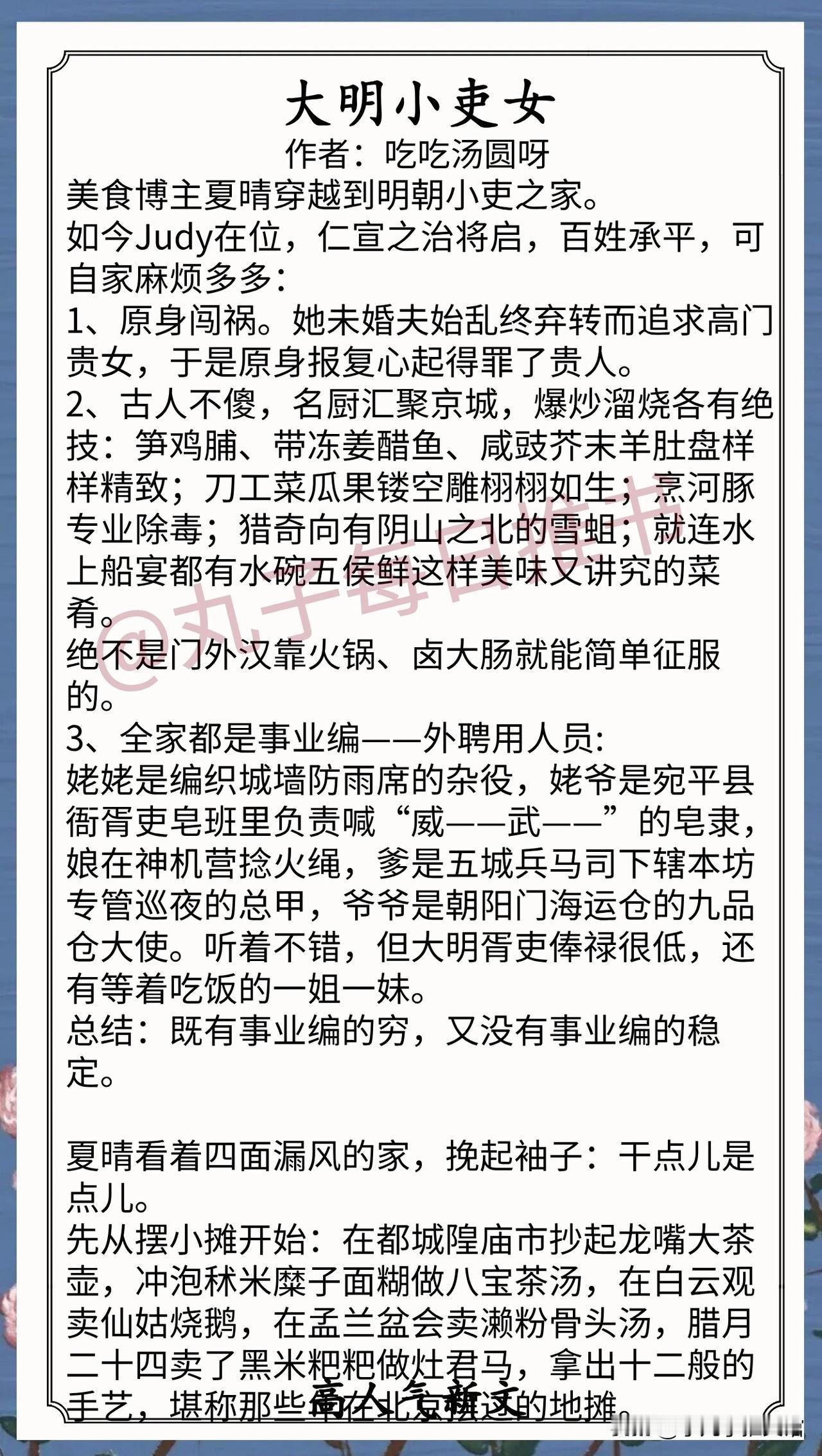 3. 《大明小吏女》作者:吃吃汤圆呀(美食博主vs小捕快,穿越,美食经营,大明京师老百姓风土人情)