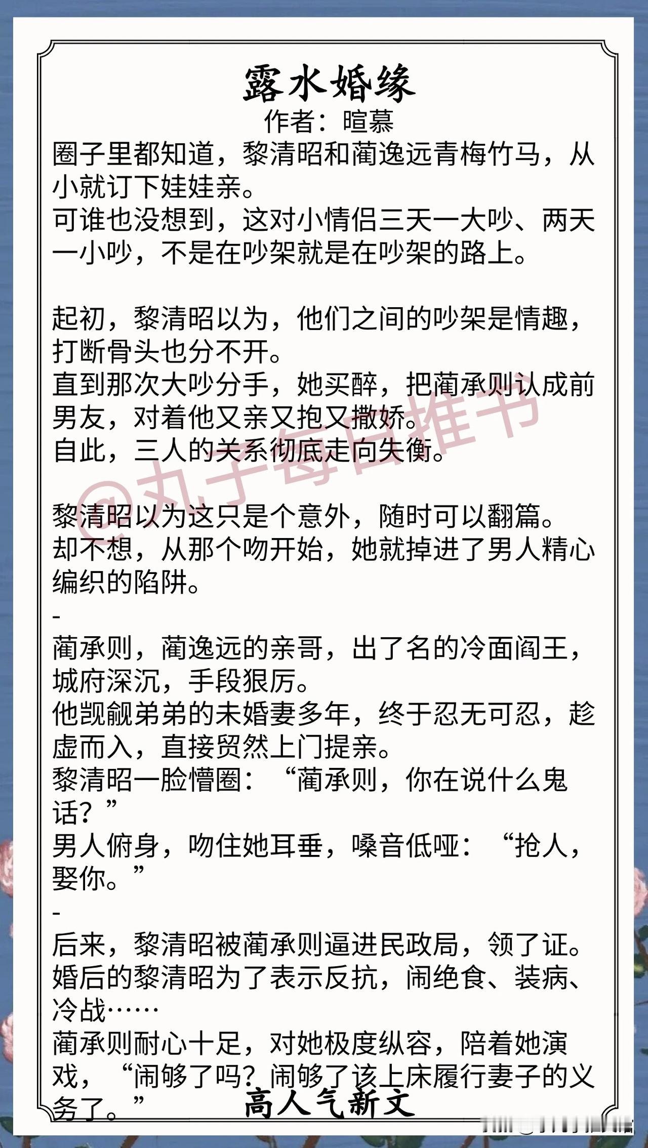 6. 《露水婚缘》作者:暄慕(娇纵又怂包的小作精vs腹黑霸道年上daddy,撬墙角,强取豪夺,年龄差)